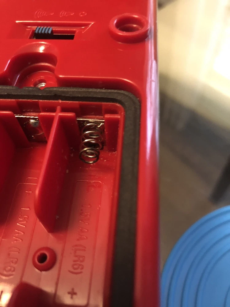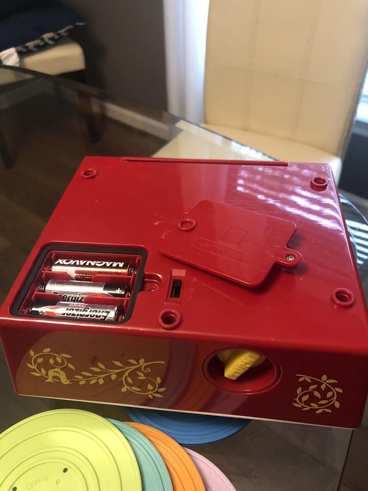 Fisher Price Music Box Record Player 2014 With 5 Double Sided Records 10 Songs. Tested and works. All ten disks play. Old batteries leaked just on the springs (see picture) does not affect play. Smoke free and pet free home. Will accept returns. Buyer pays shipping both ways.