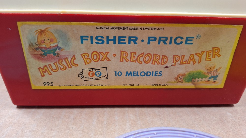 Here is a Fisher Price Music Box Record Player with the paper label #995 w/5 Double Sided Records from 1971. It works - see video.