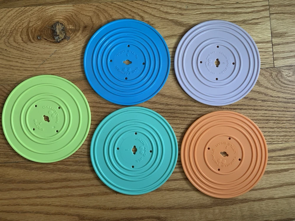 Fisher price record player with all 5 records! Turn the knob to make the record actually spin! Takes AA batteries (one set included)