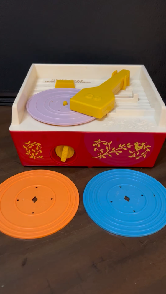 Fisher price music box record player with 3 discs. 2014 edition, in excellent clean condition. The back has convenient storage for the discs. Works perfectly....