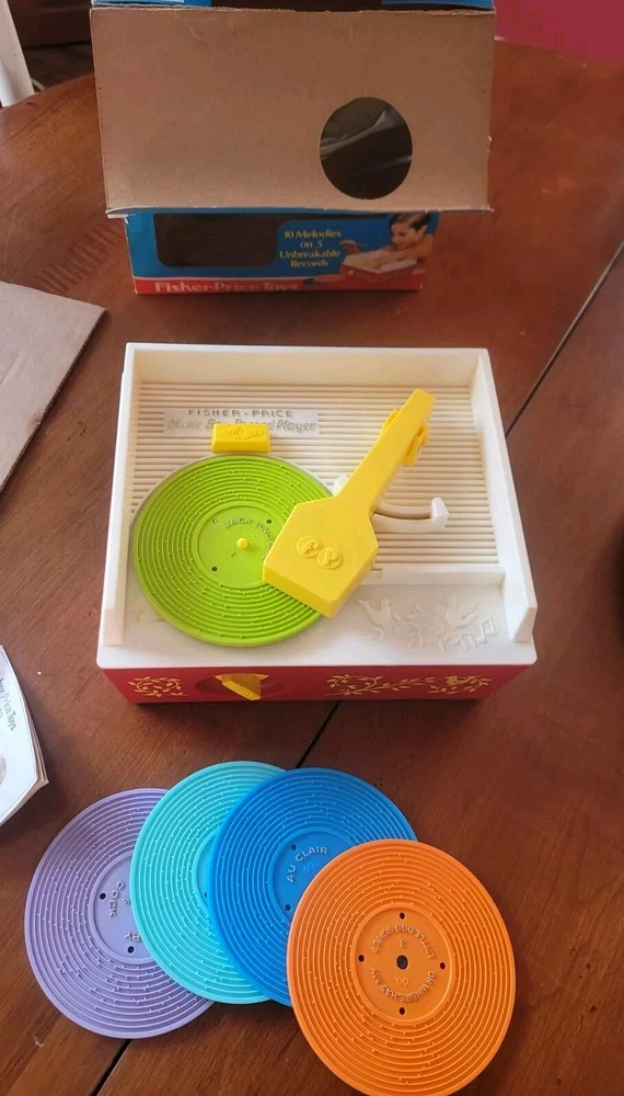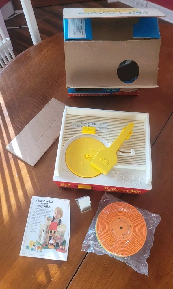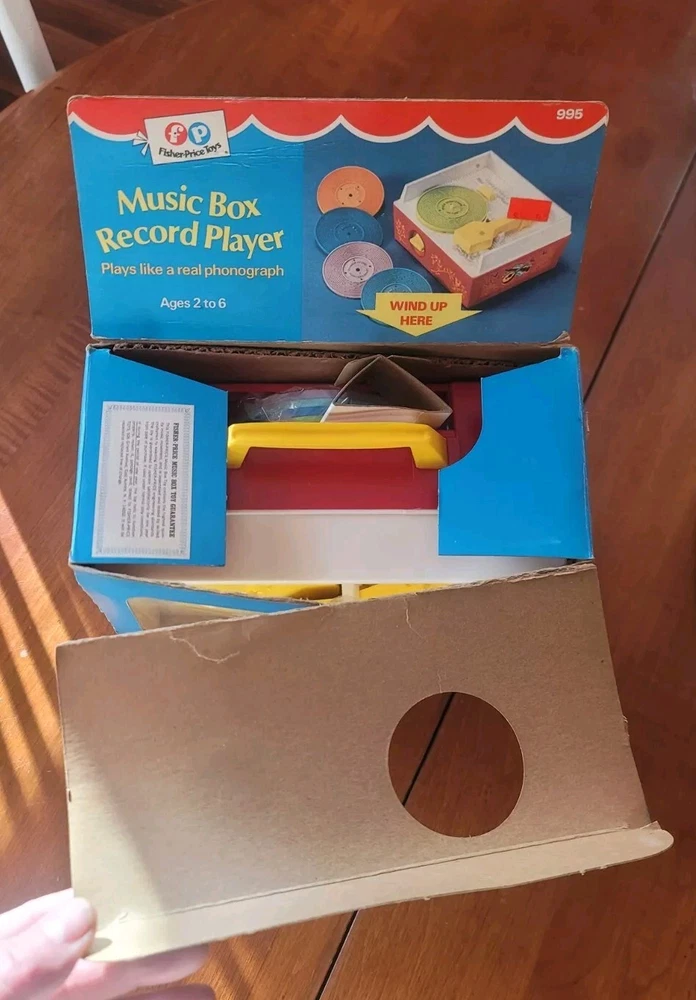 Window Box is very hard to find Box has mod wear as seen. Window is attached but very fragile and thin. Top flap all in tact but rough condition . Catalog included and records bag Toy is nice overall with the records. It is overwound however I don't believe it's actually broken so seems like an easy repair inside. The arm is nice and did play the records by hand. Really great tough to find toy.Inbox all it's really missing is working condition