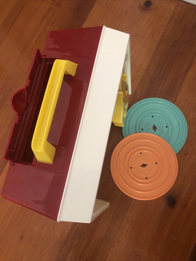 Fisher Price record player, 2014 Plays music, but turntable does not turn. 2 discs included that play: Where oh where has my little dog gone London Bridge Camptown Races Children’s Marching Song Ships...