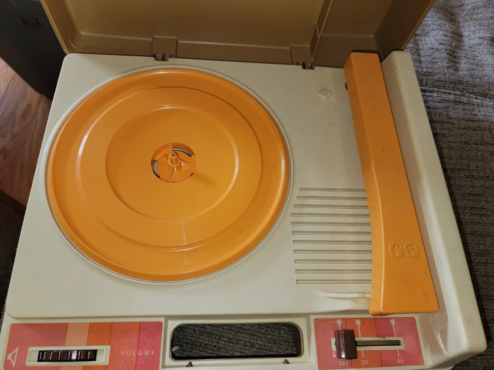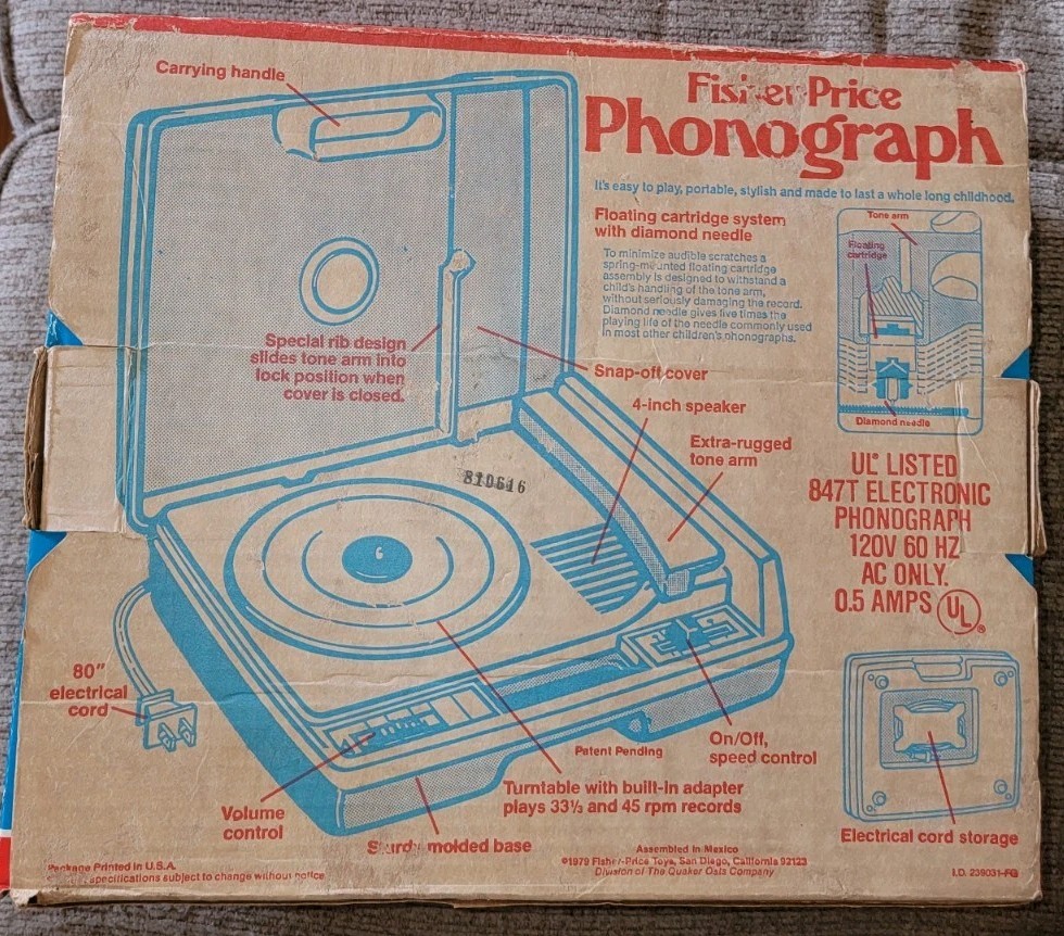 1979 travel record player. Works. Will need the brown spacer to play certain records(as shown on outside of box), and possibly a new needle. Can use a cleaning, I don't clean things to allow the buyer to make that decision. Box is in good condition and will look great on your toy shelf. I strive for 100% Positive Feedback & to provide 5-Star Service. If you are not satisfied with your items, please contact me before leaving Negative or Neutral Feedback. Dont forget to check out our other listings. We are adding stuff almost every day. If you see something you like, shoot us an OFFER. Check us out on our yard saling/thrifting adventures on YouTube: THISANDTHATTN