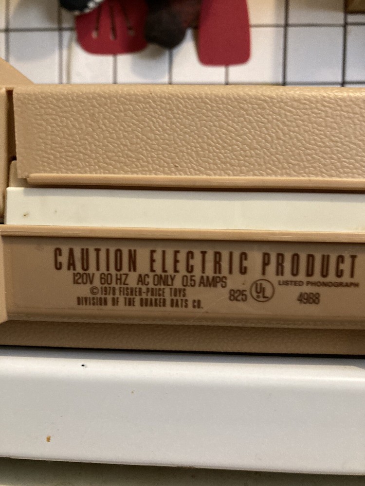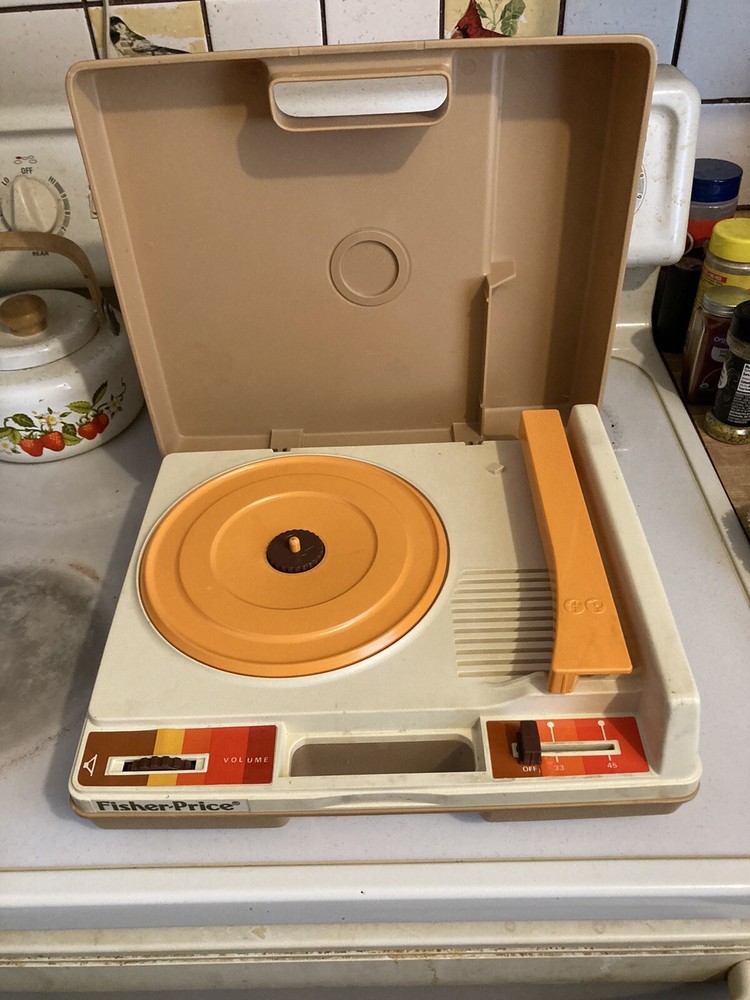FOR SALE Fisher Price record player model 825 turntable. This vintage turntable plays wonderfully. You can enjoy playing your favorite records with this classic toy, which features a colorful design and is perfect for preschoolers and kids who love to pretend play. The turntable is branded by Fisher-Price, a trusted name in the toy industry Shipping & Handling: Cost based on buyer's zip code , you pay what it cost to ship , I make nothing on shipping period. SIMPLY LEFT CLICK THE CALULATE BUTTON AND ENTER YOUR ZIP CODE. IF YOU ARE UNHAPPY WITH YOUR PURCHASE , PLEASE CONTACT LINDA OR STEVE WE'LL BE HAPPY TO TRY TO MAKE THINGS RIGHT. WE WANT YOUR POSITIVE FEED BACK , IT MATTERS TO US. WE WILL SECURELY PACK TO THE BEST OF OUR ABILITY , MORE SO, ON ALL GLASS SALES Please refer to all photos provided for your reference to condition Shipping weight is- 7 # SHIPPING BOX SIZE- 12 x 10 x 7