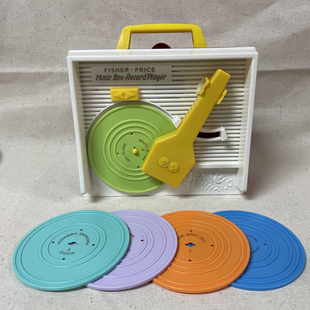 Fisher Price Record Player Retro 2010 With 5 Records - Music Box Tested & Works.