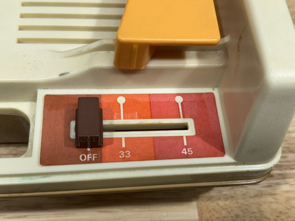 For your consideration I have a vintage Fisher Price record player (model 825). Record player comes on and all functions appear to work properly. Included a video in the listing to show the player running (record not included). It shows all the normal signs you would expect from a preowned vintage toy. Has been wiped down but could use a bit of cleaning up as the unit has been in storage for quite some time. I offer 1 day handling and ship daily so you can expect your item to arrive promptly. Thank you!