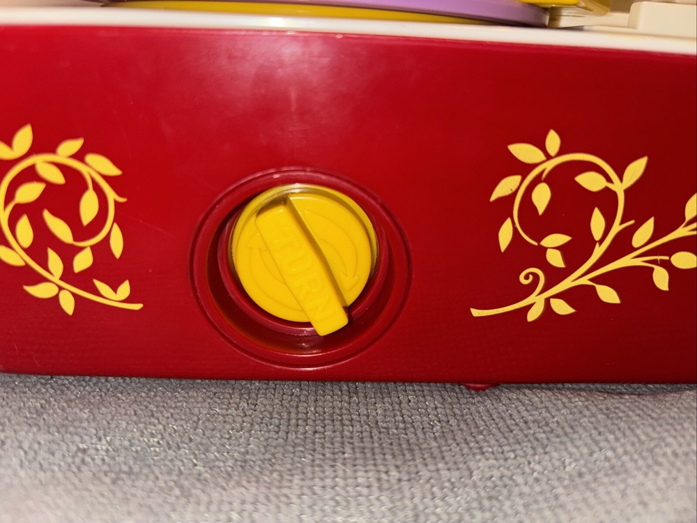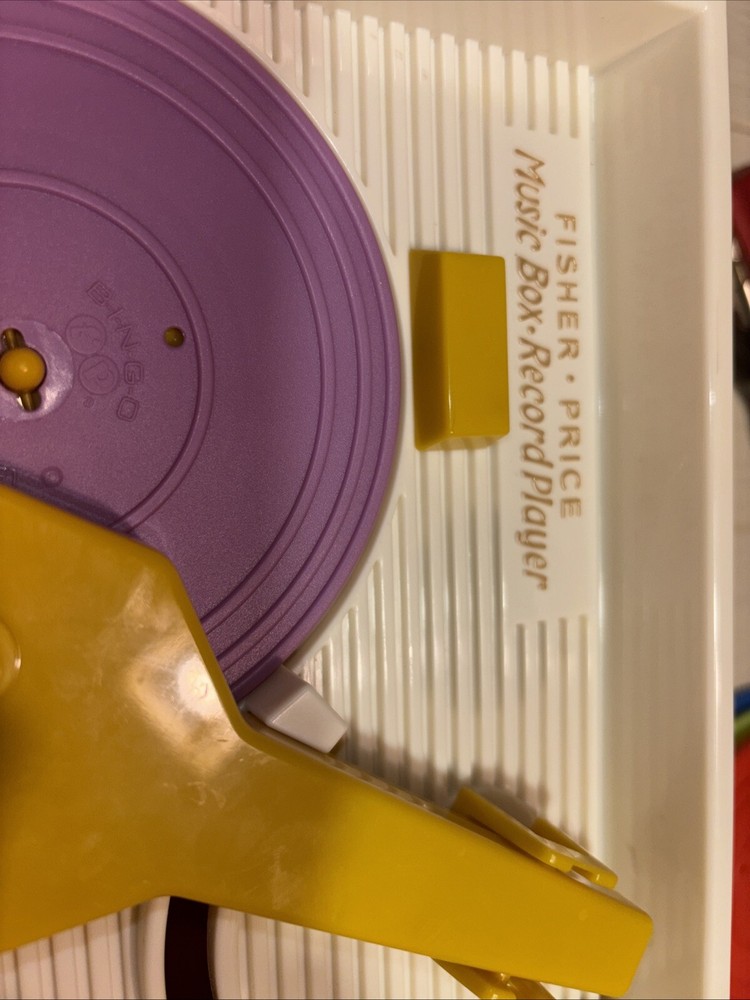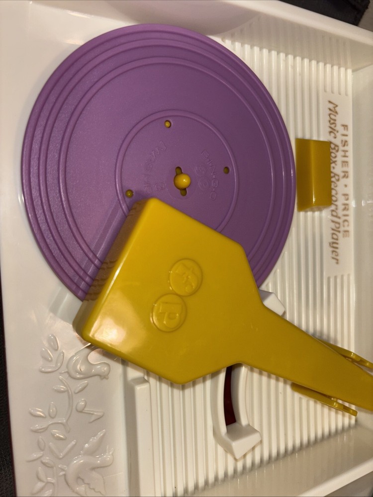 The Fisher-Price Record Player is a music box that plays all ten songs. It is a vintage toy made by Fisher-Price, suitable for preschool-aged children for pretend play. It is part of the musical toys category and is a featured refinement within the Fisher Price brand.