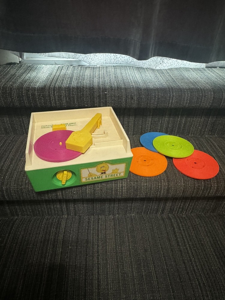 Fisher Price Vintage 1984 Sesame Street Music Box Record Player W/ 5 Records works great and excellent condition