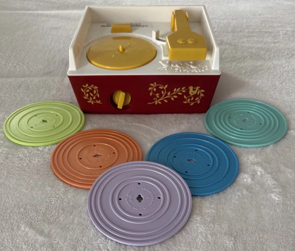 Fisher Price Vintage Music Box Record Player With 5 Records 2014 Reproduction Tested and working!