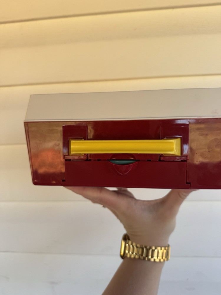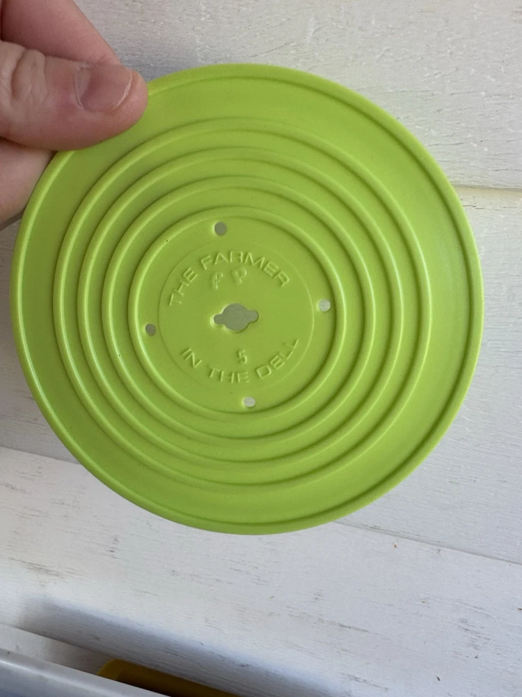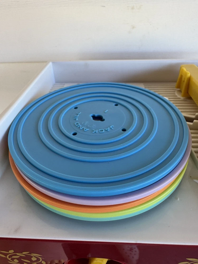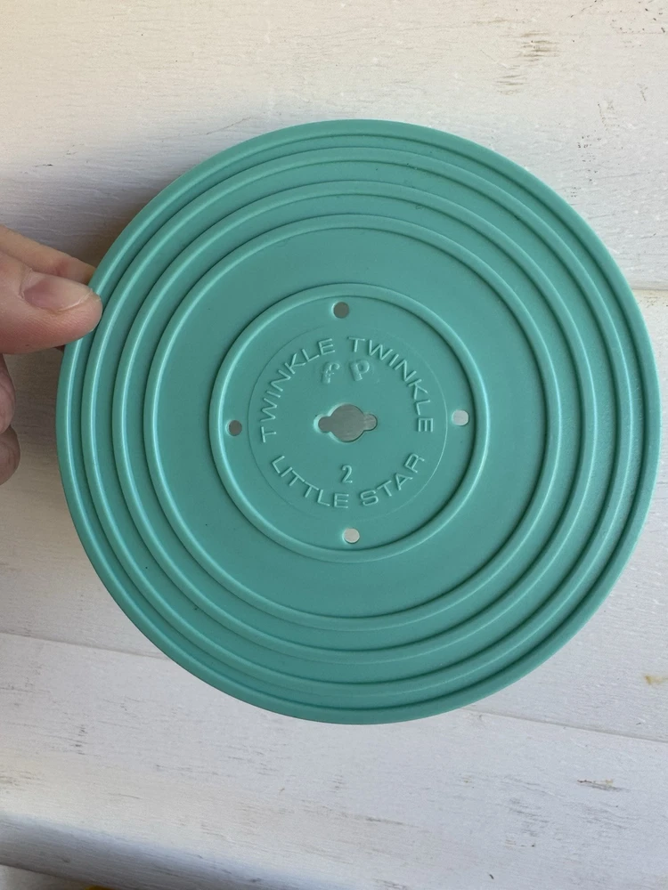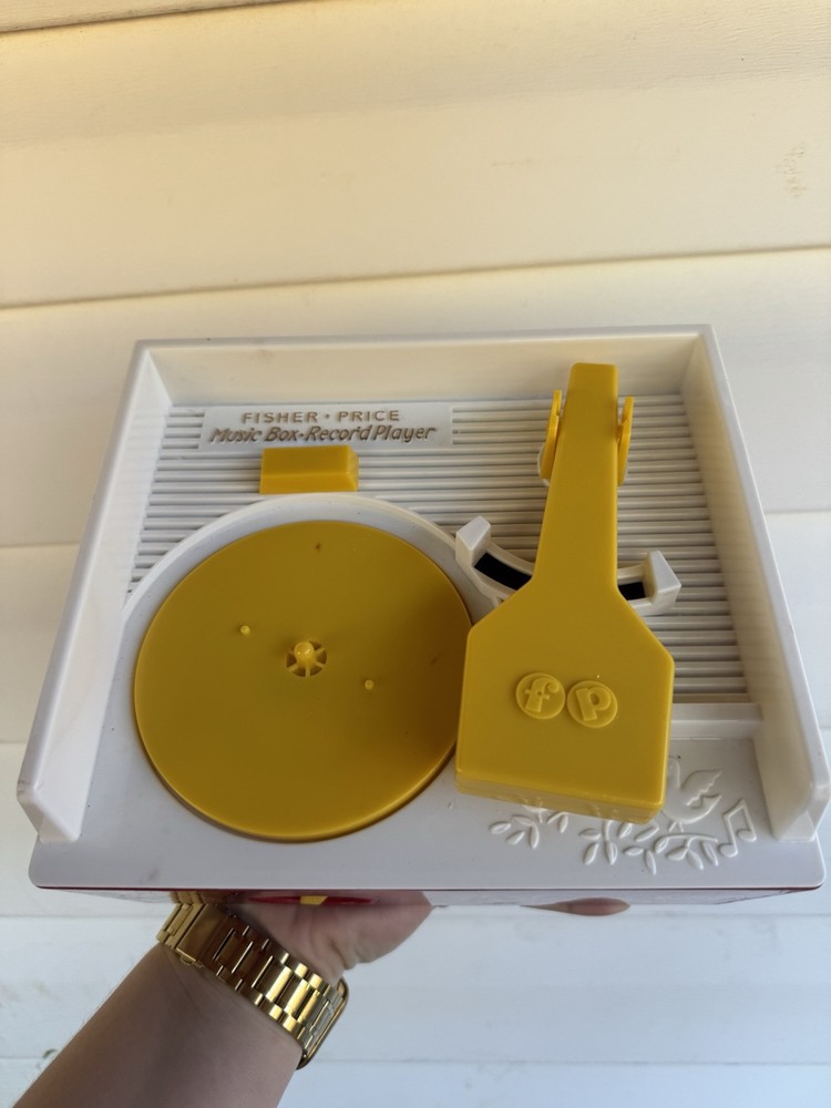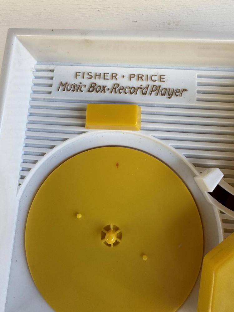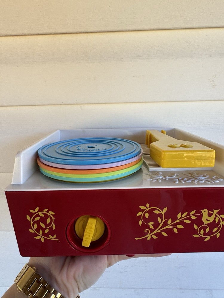 The Fisher Price Vintage Music Box Toy Record Player from 2014 is a nostalgic toy made in the United States. It features a music box that plays music using discs, and it comes with 5 discs for entertainment. This classic toy is from the Fisher-Price brand known for its quality preschool toys and pretend play items. The product is in working condition, allowing children to enjoy the timeless experience of playing music on a vintage toy record player.