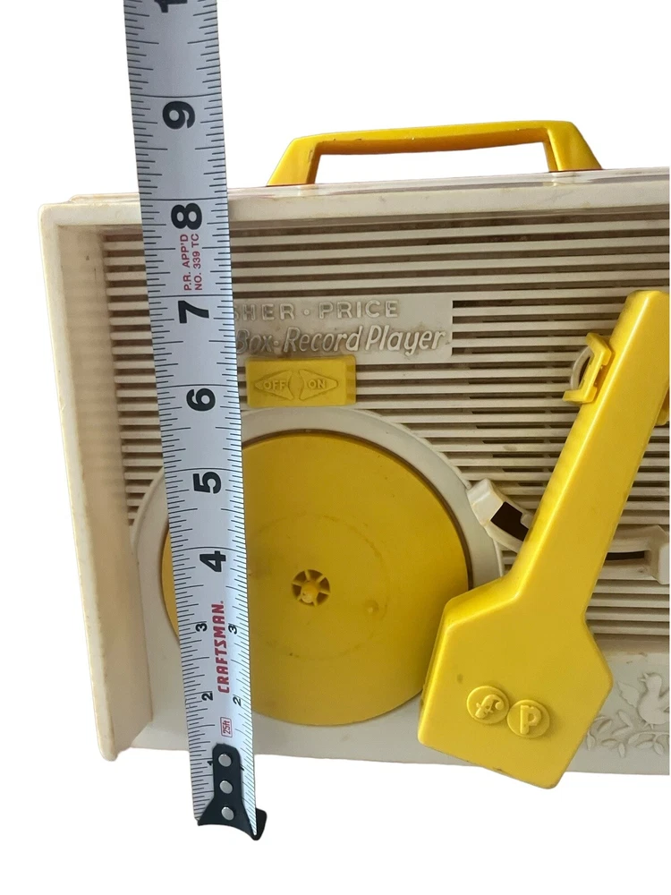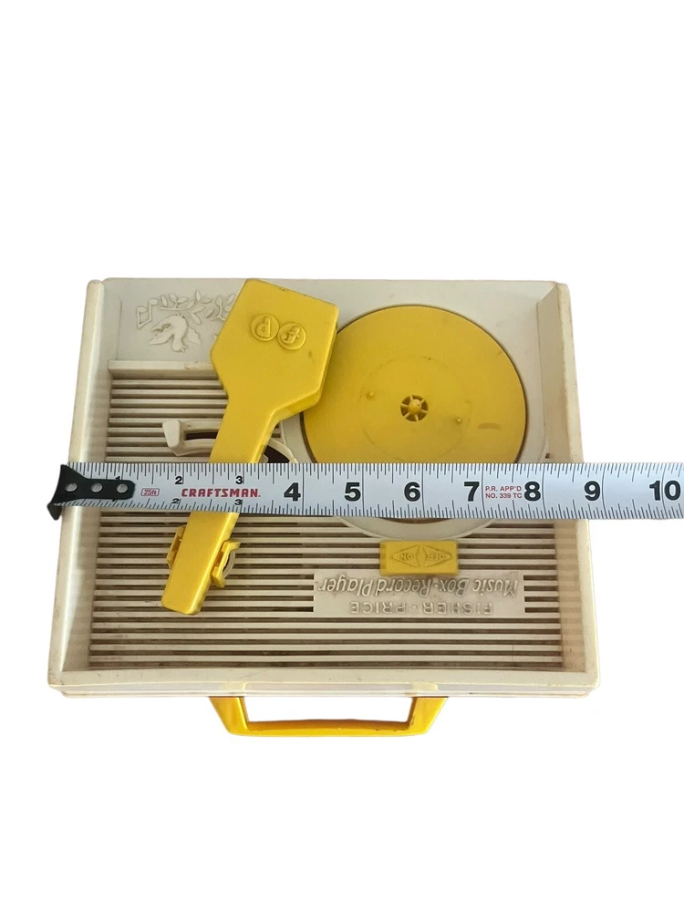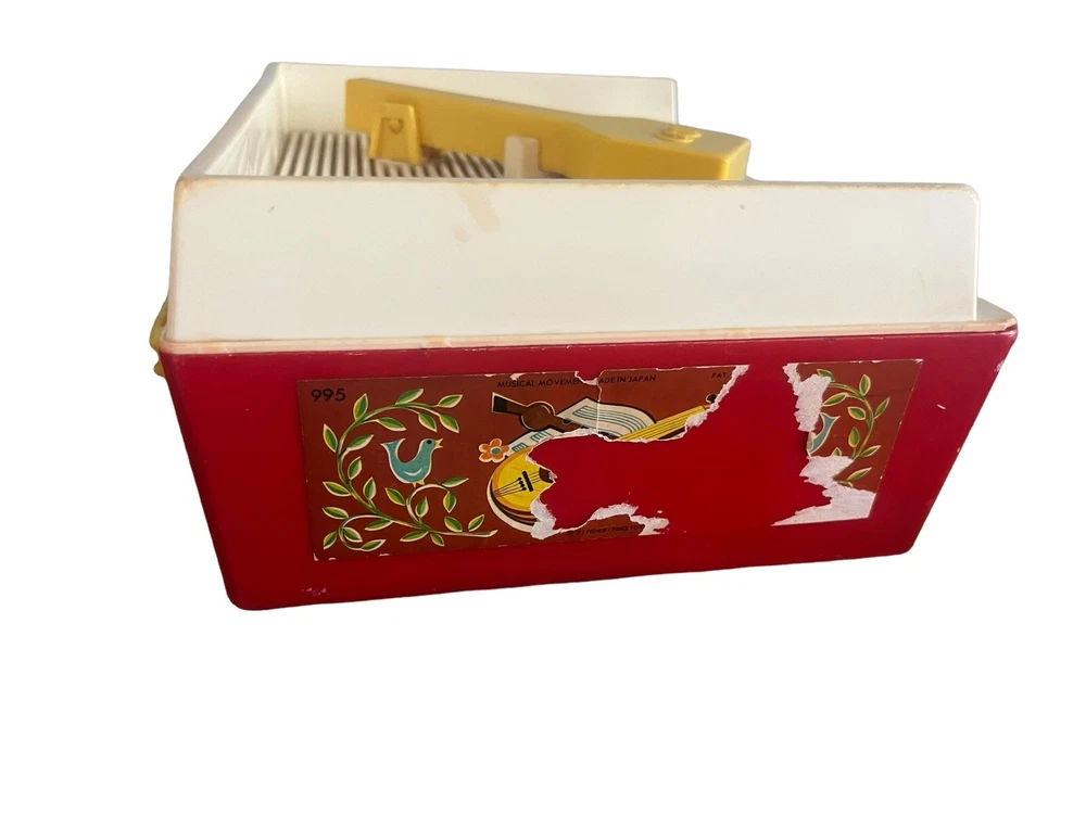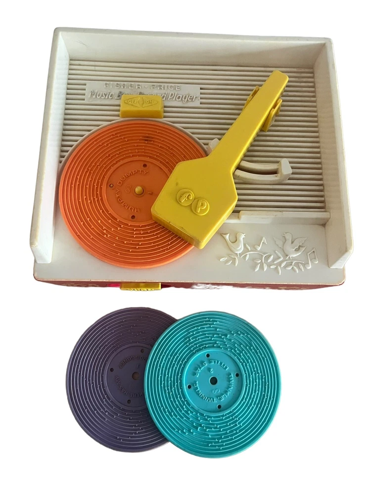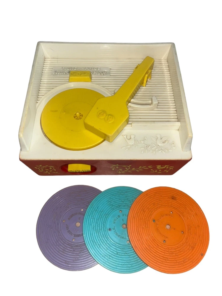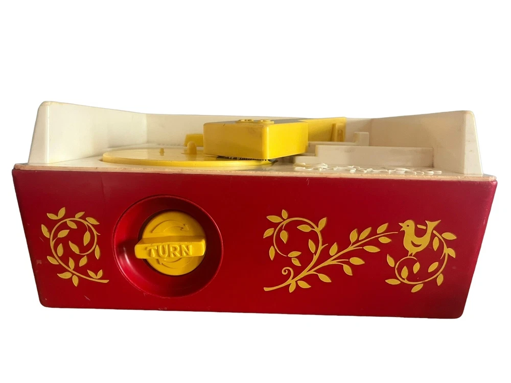 Fisher Price Vintage Wind Up Music Box Record Player #995 is a classic toy that plays music from three included records. The music box is operated by winding it up and it works!