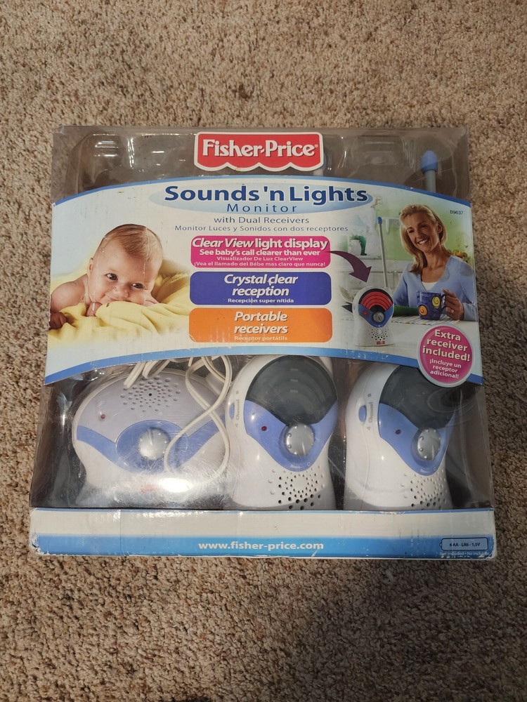 Fisher Price White/Blue Sounds 'N Lights" with Dual Receivers Baby Monitor B9637...