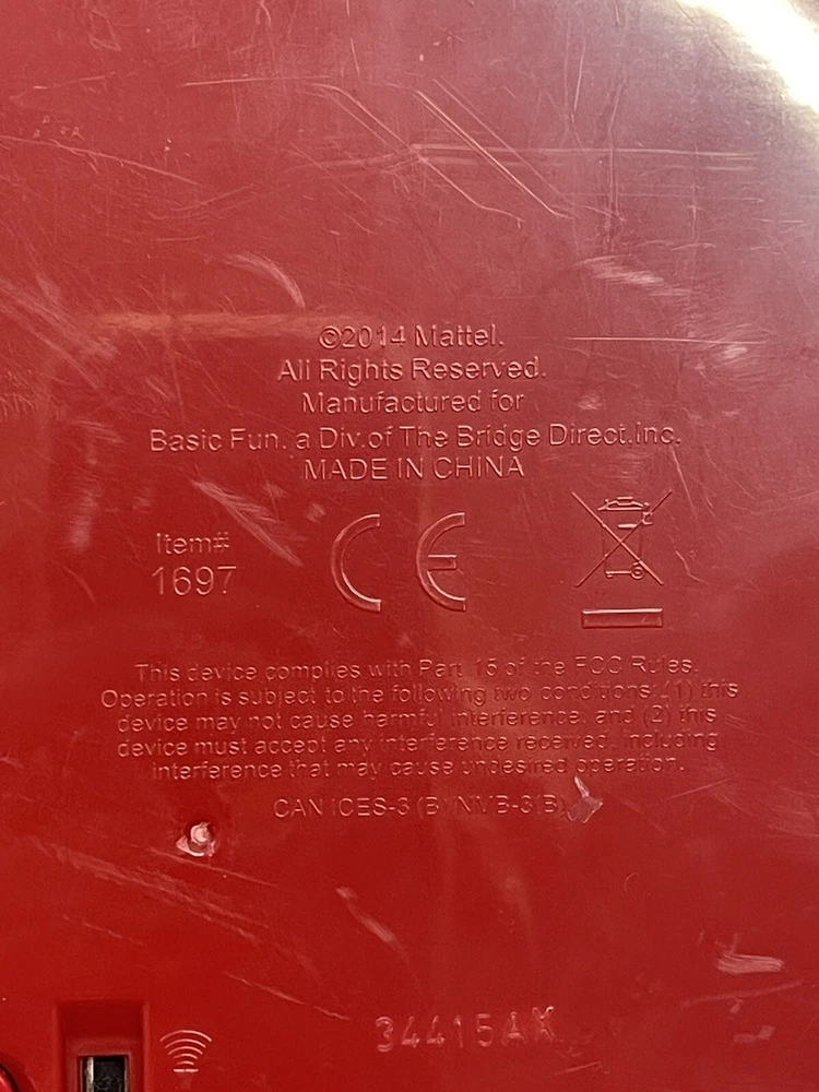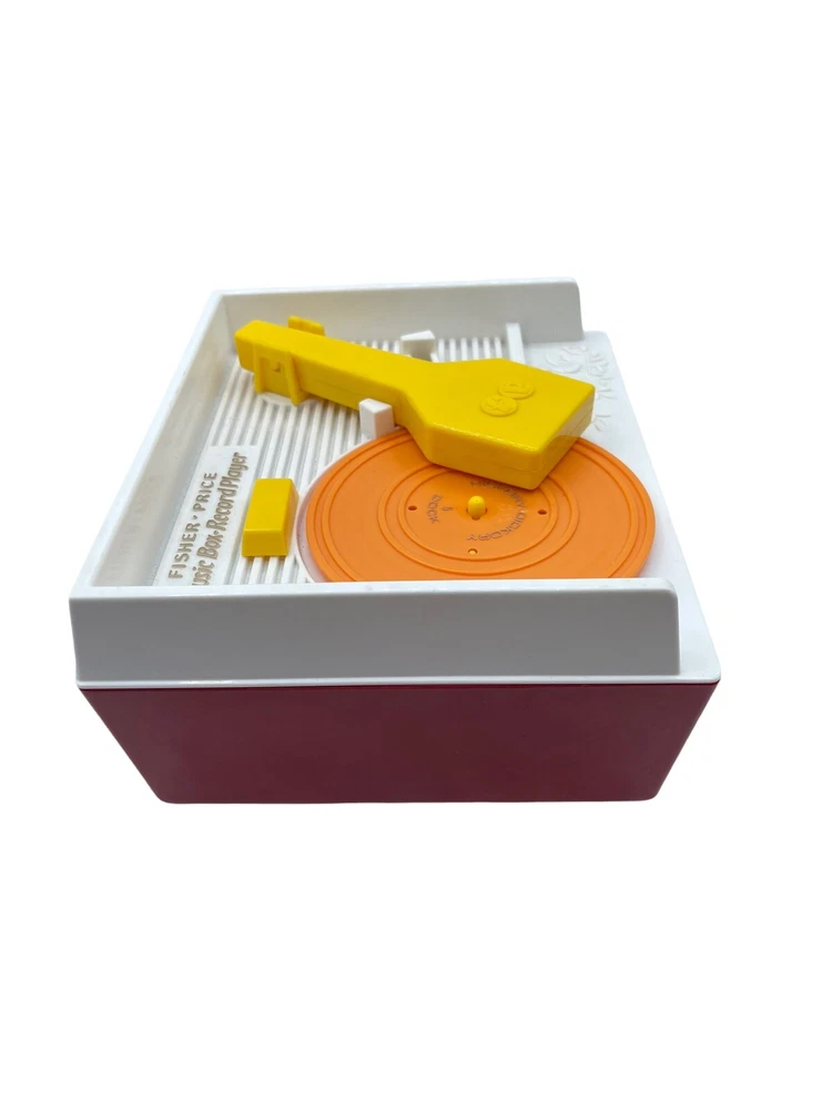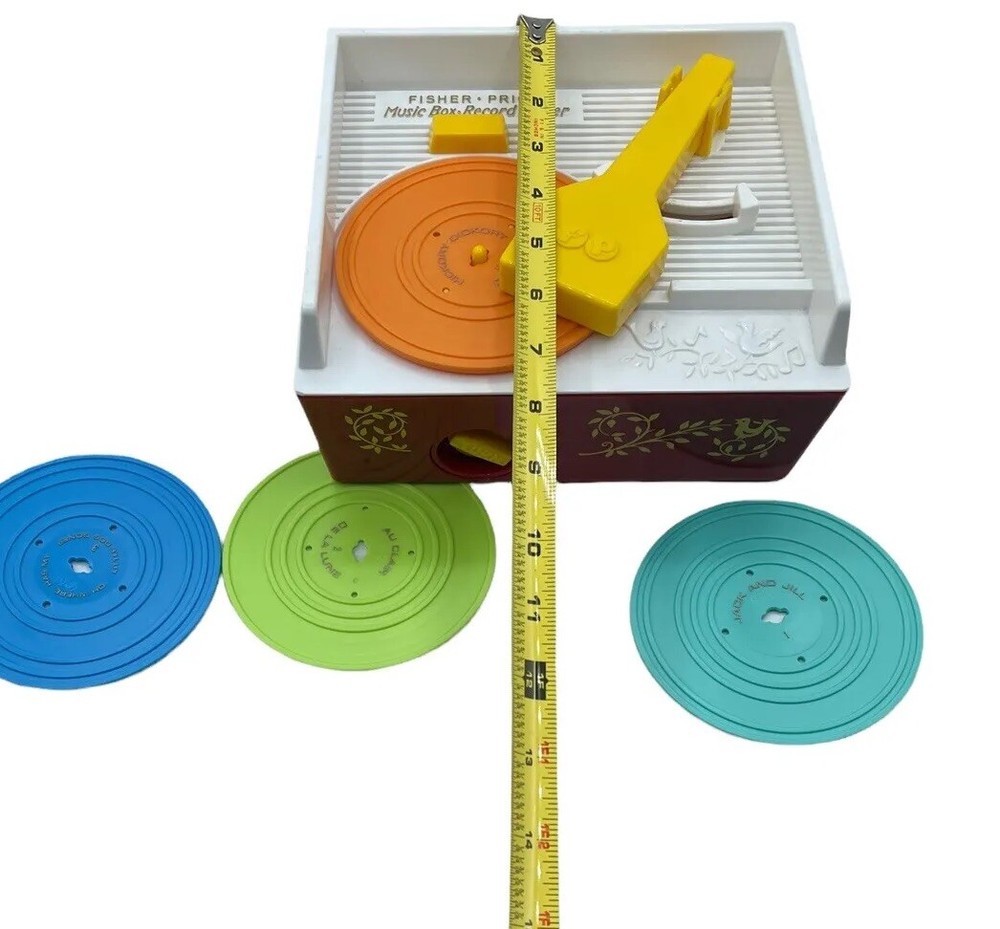 Fisher Price Record Player With 4 RECORDS Works. 2014 Has small pen mark on side. Scratches. Scratches. See close up photo....