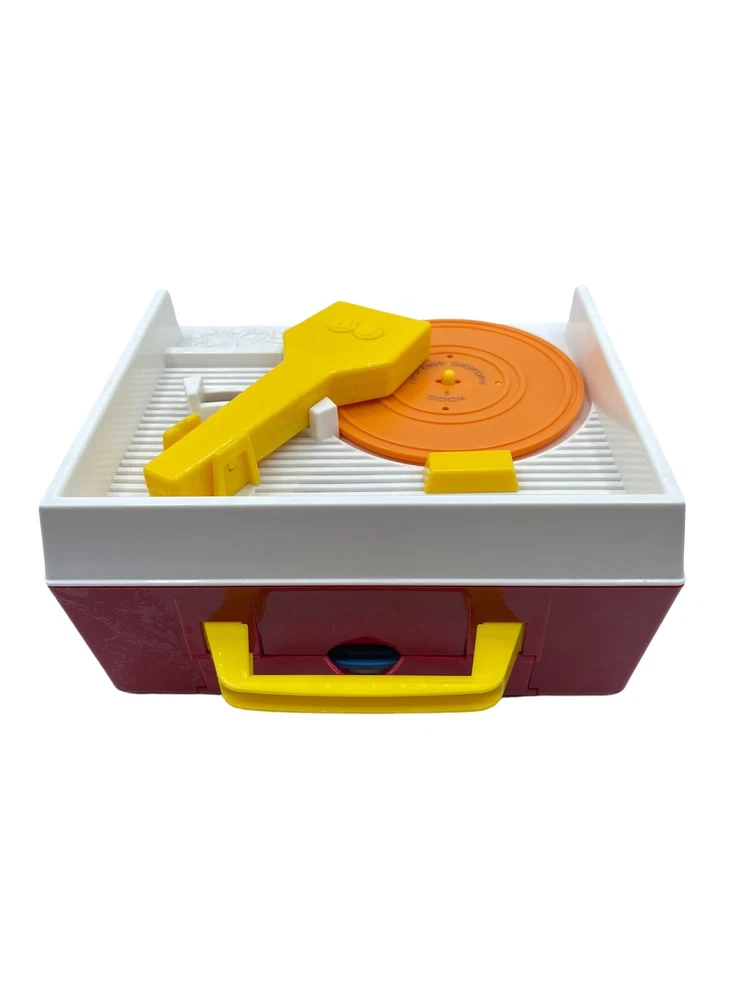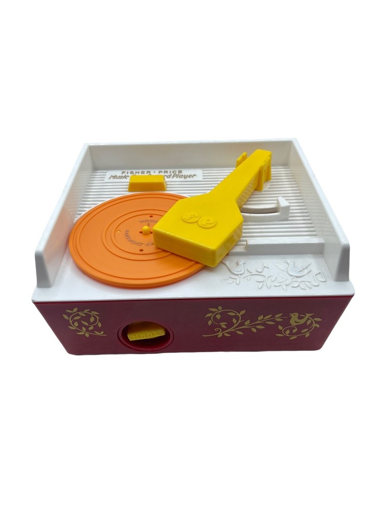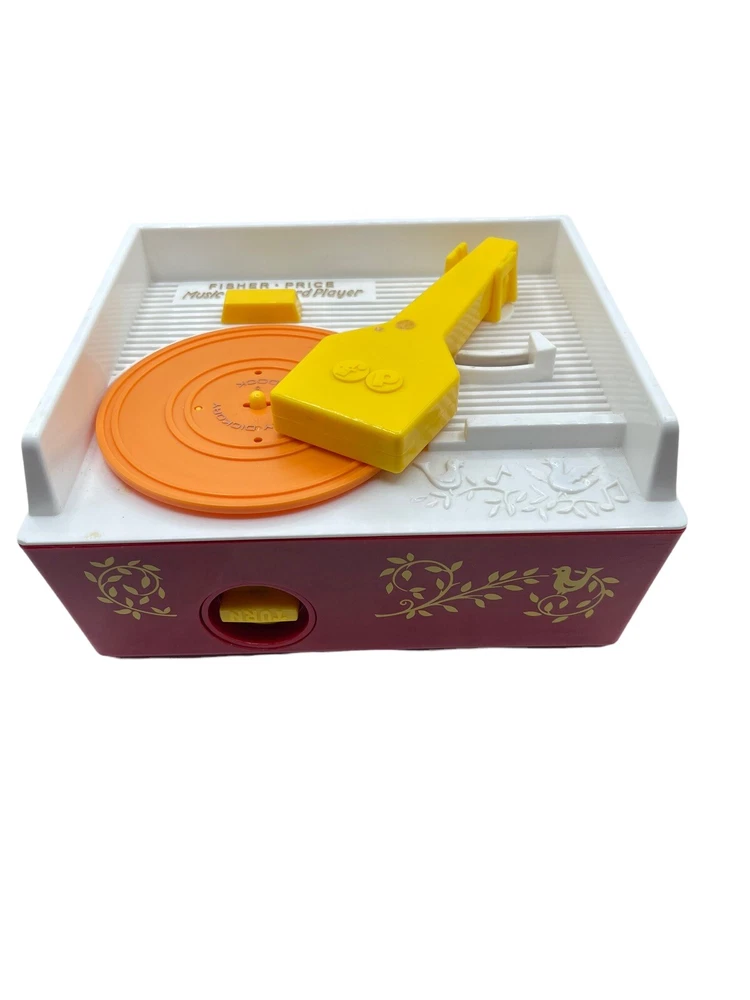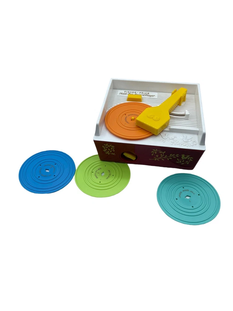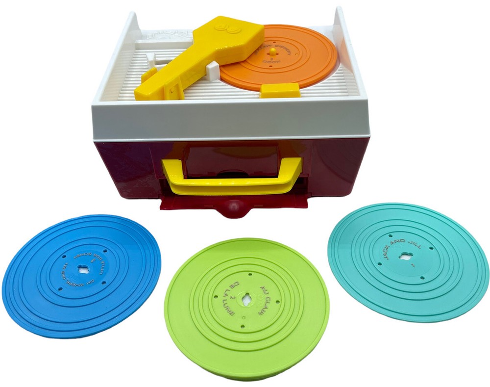 Fisher Price Record Player With 4 RECORDS Works. 2014 Has small pen mark on side. Scratches. Scratches. See close up photo.