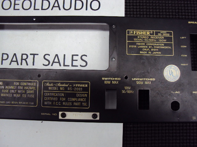 Hi up for sale an original Fisher RS 2003 Back Panel. Tested. Removed from a working RS 2003 receiver. This part fits the Fisher RS 2003. I do not know if it fits other models, Sorry. Parting out Fisher RS 2003 receiver and many other Vintage electronic Units. As off 6/30/2016 all parts will be shipped within 1-3 business days of receiving payment. Most parts will still be shipped within 24 hours. Sorry for any inconvenience this may cause. Hundreds of thousands of hard to find vintage name brand and off brand solid state, turntable, speaker, and reel to reel parts in stock. I have 48 years of parts accumulation. I might have what you need. Contact me for all your parts needs. Thank you. joeoldaudio Part swappers beware all my parts are marked. Let’s keep e B a y fun. All unpaid item cases will result in buyer blocked from all future items. International buyers please note, all international shipments are sent priority mail insured only or via e B a y global shipping program. Custom forms or amounts will not be altered. Please contact me.