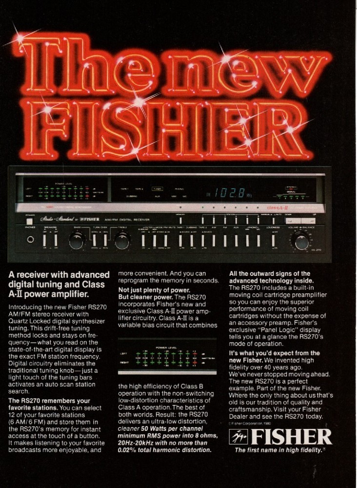 Fisher - RS 270 Receiver - Original Magazine Ad - 1980 Very good Condition. (Lot# - AUD-33-3) Shipping to the U.S. is 3.95 - International shipping - Ebay international shipping program Payment is by ...