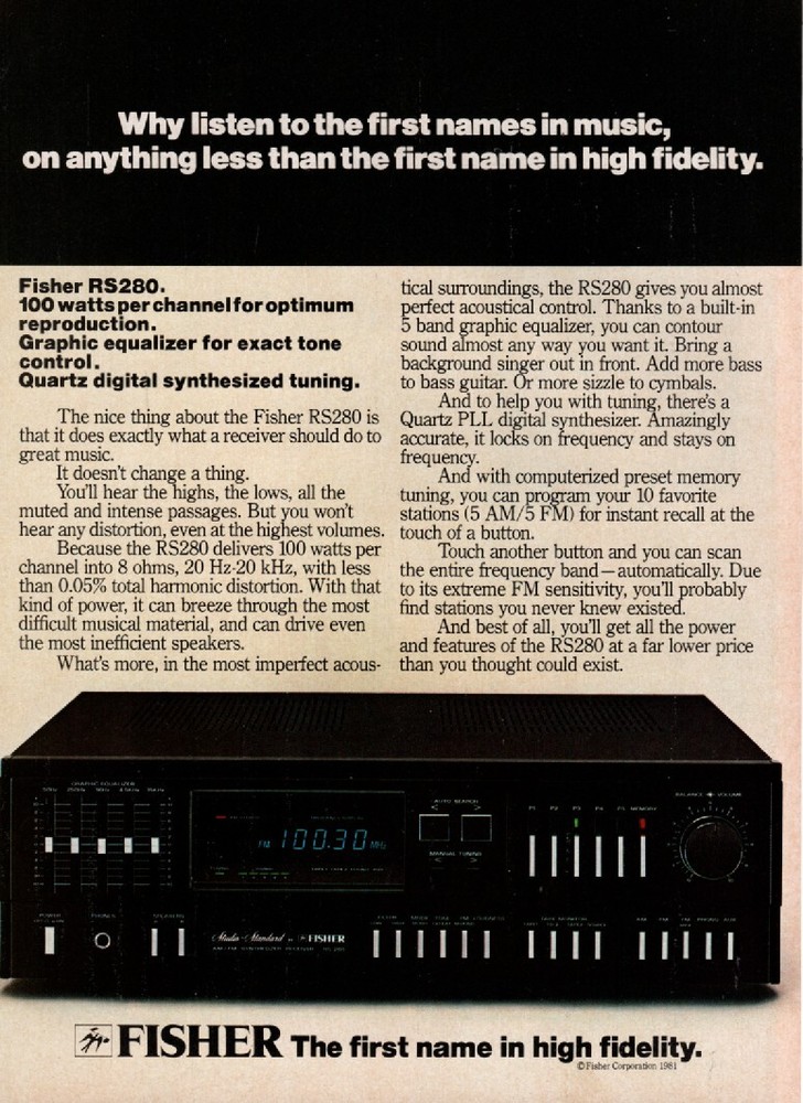 Fisher - RS 280 Receiver - Original Magazine Ad - 1981 Very good Condition. (Lot# - AUD-29-34) Shipping to the U.S. is 3.65 - International shipping - Ebay international shipping program Payment is by Ebay Managed Payments