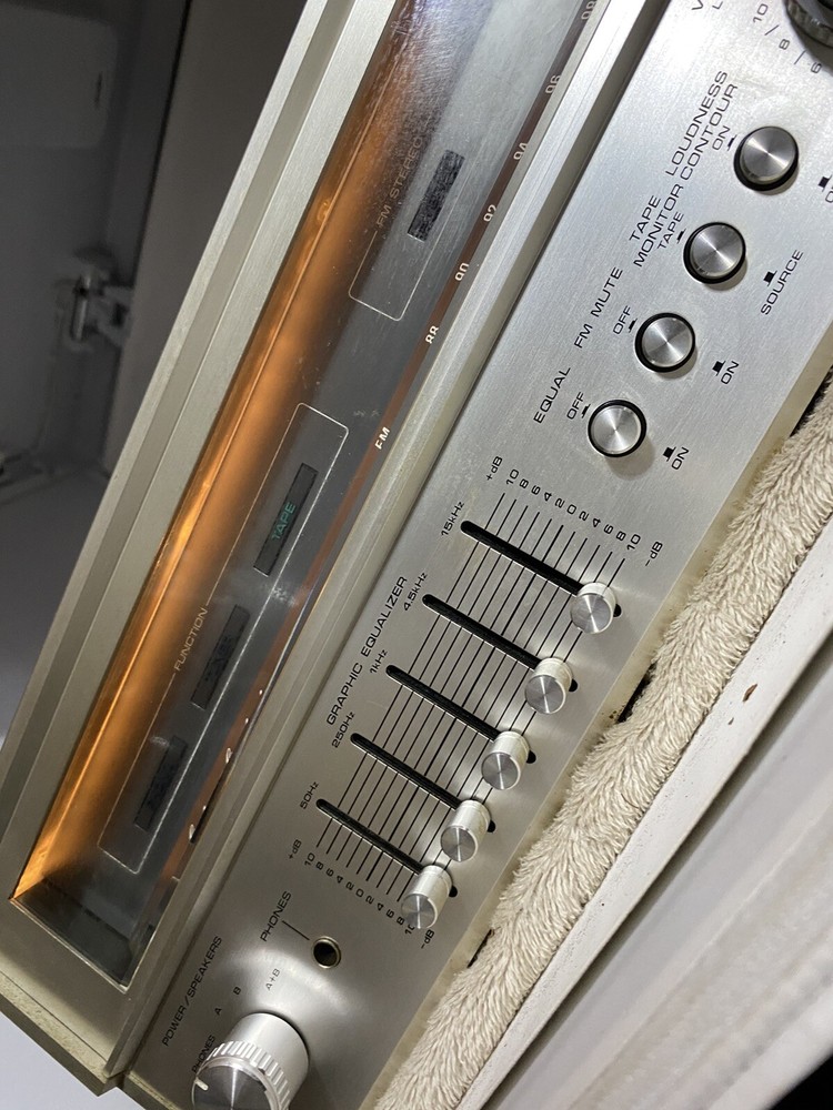Used in working condition, some Static in volume knob, when adjusting volume, not bad, electric electric parts cleaner spray should clear it …sounds goods all Chanel’s work