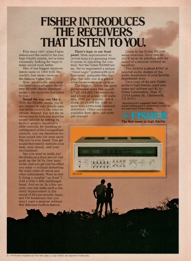 Fisher - RS-2010 Receiver - Original Magazine Ad -1979 Very good Condition. (Lot# - AUD-14-25) Shipping to the U.S. is 3.65 - International shipping - Ebay international shipping program Payment is by Ebay Managed Payments