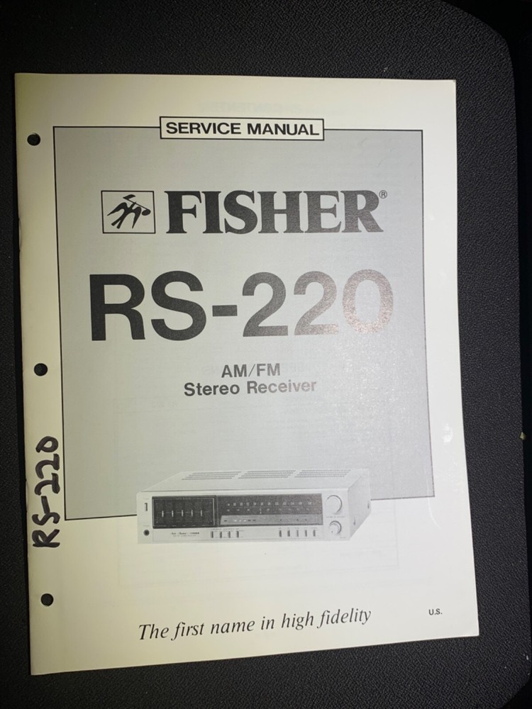 I am selling a Fisher RS-220 Service Manual AM/FM Stereo Receiver Original.. Item was used at a repair center .. Item will be shipped USPS First Class or Media Mail..