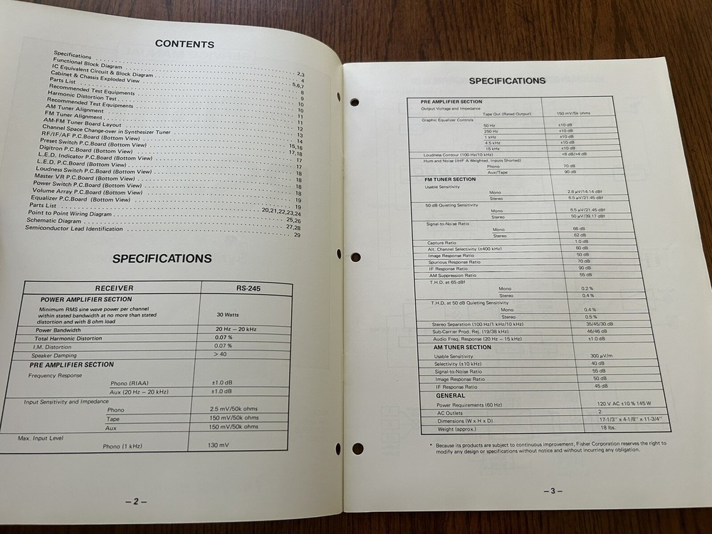 Vintage Fisher RS-245 AM FM Stereo Receiver Service Manual OEM