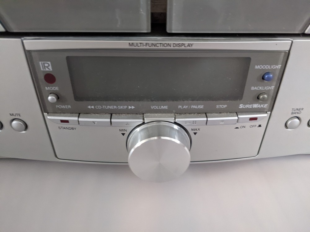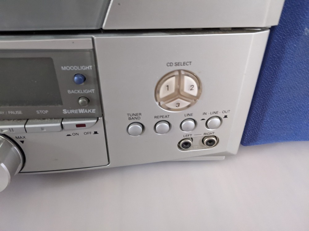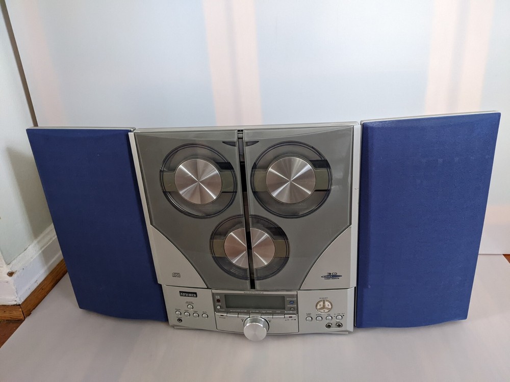 Fisher SLIM 2000 AM/FM/Alarm Radio 3CD Changer. For parts or repair. Radio works. CD Changer didn't open/close doors. No remote. Only parts on photos included into this sale. Please review photos for details.