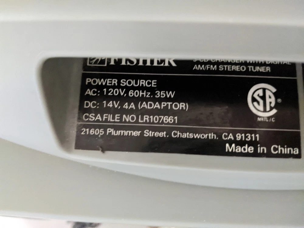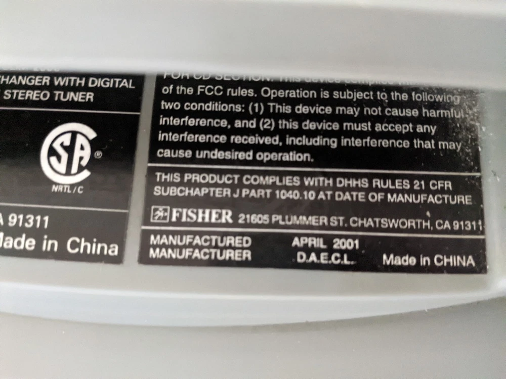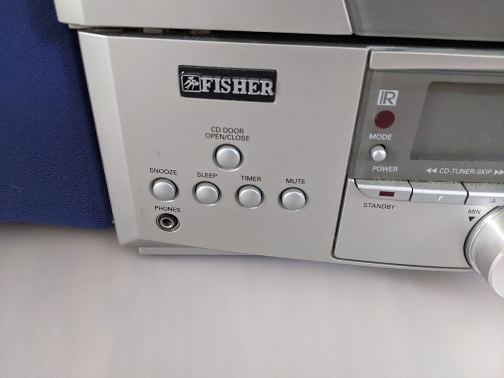 Fisher SLIM 2000 AM/FM/Alarm Radio 3CD Changer. For parts or repair. Radio works. CD Changer didn't open/close doors. No remote. Only parts on photos included into this sale. Please review photos for ...