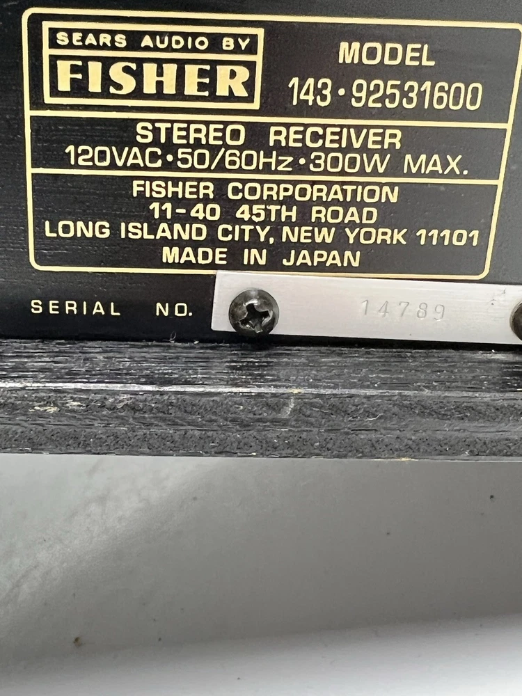 Fisher Stereo Receiver Model 143-92531600. Missing one Knob Cover.