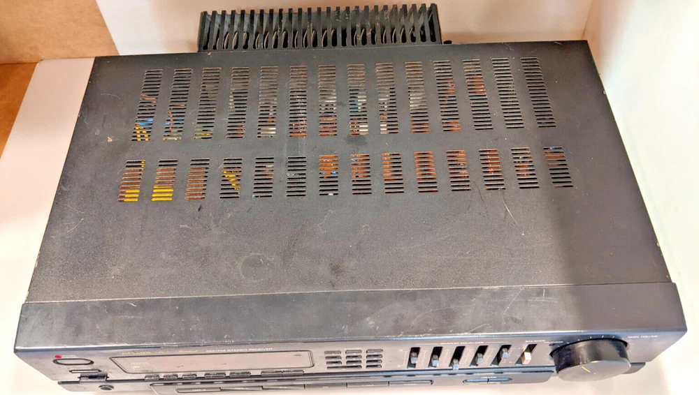 Receiver in working condition. Display-OK. FM and AM reception -OK. Equalize -OK. Volume control intermittent in one channel. Cosmetics has some scratches -see pictures.