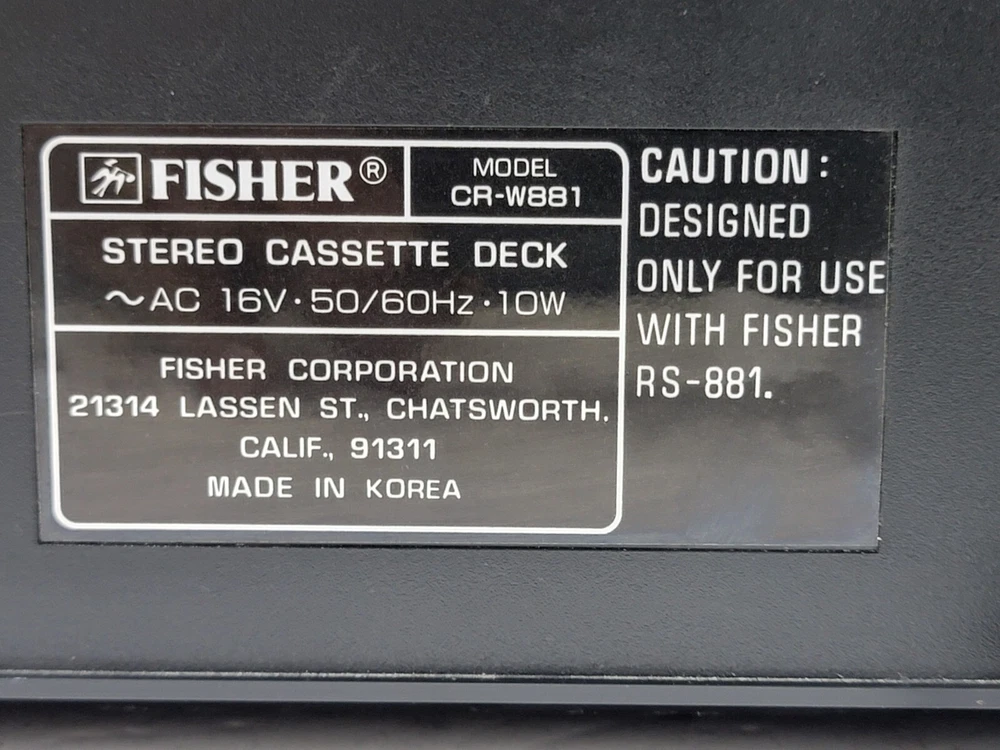 Fisher Studio Standard CR-W881 Double Cassette Deck Player/Recorder (Needs Belts!) Powers ON