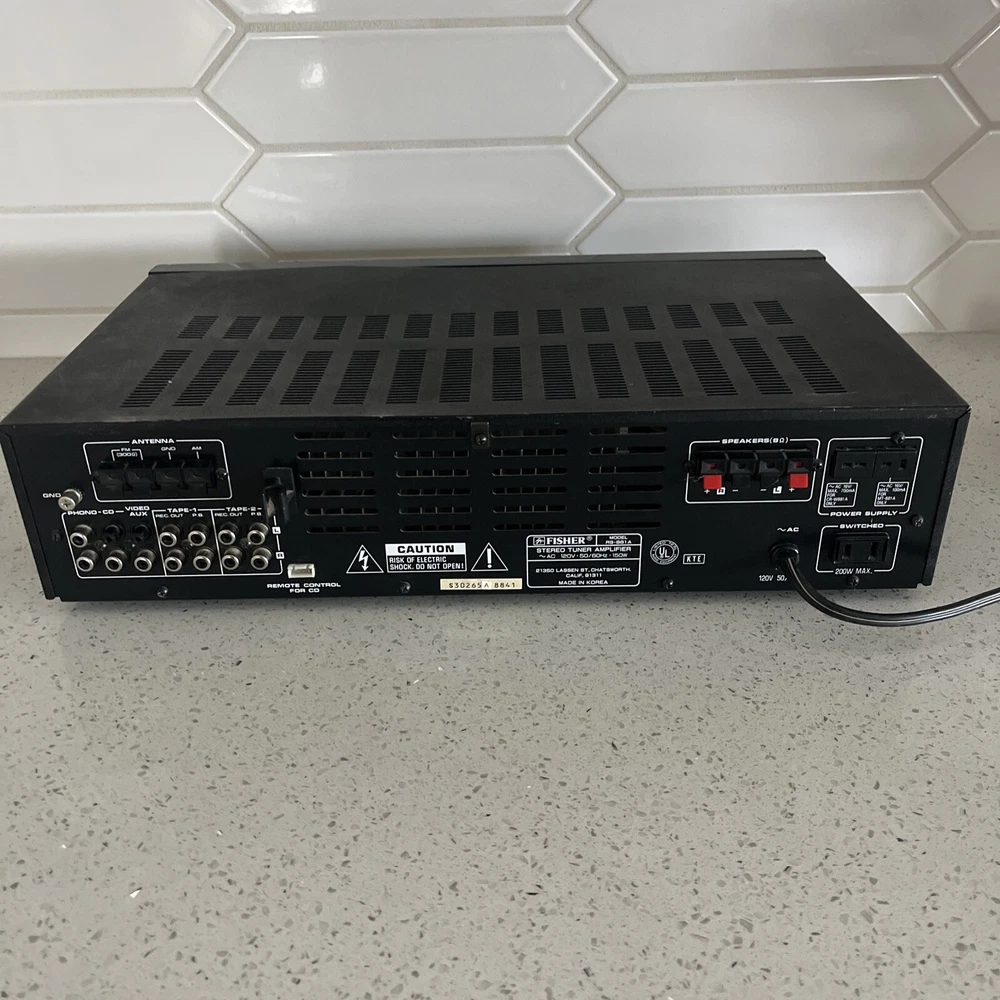 This Fisher Studio Standard RS-881a AM/FM Stereo Receiver is a vintage piece of electronics that works great. It is made by Fisher, a trusted brand in the audio industry. This receiver is perfect for those who are into vintage audio and video equipment. The model number for this receiver is Rs-881a and it was manufactured in Korea, Republic of. This receiver comes with an antenna and is ready to use. It is a great addition to any collection of vintage electronics. See photos for physical condition