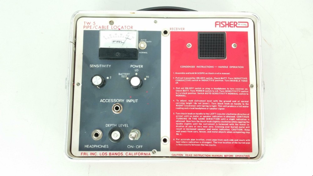 Fisher TW-5 Transmitter & TW-5 Pipe/Cable Locator Receiver Used - powering up, we don't have equipment for further testing You will receive what you see on the pictures No more accessories included PAYMENT • PAYPAL: We only accept PayPal payments from U.S. verified accounts with confirmed addresses. NO EXCEPTIONS • NON PAYING BIDDER: As per eBay guidelines, if an item is not paid for within four days after end of auction an unpaid item case will be opened. You have 4 days after that to send payment. SHIPPING These items are sensitive electronic components. We use the most care during packaging. • TRUCK FREIGHT: We use truck freight for any item over 100lbs. • If shipping is not specified you must contact us for a shipping quote before bidding. • PICK UP FEES: We welcome scheduled pickups at our location; it is free per auction. Cash only! • DAMAGE CLAIMS: Damage to merchandise during shipping MUST be reported to us immediately upon discovery. ALL ORIGINAL PACKAGING MATERIALS MUST BE SAVED and submitted at the time of pickup or inspection. • We require a signature as proof of delivery on all FedEx shipments. If you are NOT going to be available to sign for the parcel, it will be your responsibility to arrange receipt of the item. • Any item returned to us as “non-deliverable”, will require additional money for re-shipment. ABOUT US We are an eBay company specializing in computers, laptops, network components, printers and other electronics. We strive to maintain a high level of accuracy, honesty and integrity in all our transactions. FEEDBACK: We use an automated feedback response system. Feedback will only be left upon receiving feedback from the buyer. Before leaving negative feedback please contact us so we can rectify the situation. WE TAKE YOUR CUSTOMER SERVICE VERY SERIOUSLY – PLEASE GIVE US A CHANCE TO FIX THE ISSUE BEFORE YOU OPEN A CASE – WE PROMISE TO MAKE IT RIGHT! HOURS OF OPERATION: Mon-Fri 9 AM PST till 4:30 PM PST, SAT by appointment only, CLOSED Sundays. Emails will only be answered during operation hours. Thank You! GUARANTEE ∙ We guarantee everything against DOA unless the item description states the item is “untested”, “not working”, “for parts”, “as-is” or another term that would indicate the item should not be expected to work. ∙ DOA means the item will NOT turn on, power up, or run self tests as described in the auction. Our guarantee is for repair, replacement, or refund at our discretion. All claims of DOA must be made in 7 days. ∙ We adhere to eBay guidelines on money back guarantees. All claims must be made within the 30 day limit. ∙ No operating systems, drivers, or software included unless specified. ∙ We do not add or remove components from our items Items sold as pictured. ∙ No other items are included unless otherwise noted. This includes adapters, software, cables, wires, manuals, or any other item UNLESS IT IS SPECIFICALLY NOTED. Note: We Track Serial Numbers on all Items and components to prevent FRAUD Listing and template services provided by inkFrog