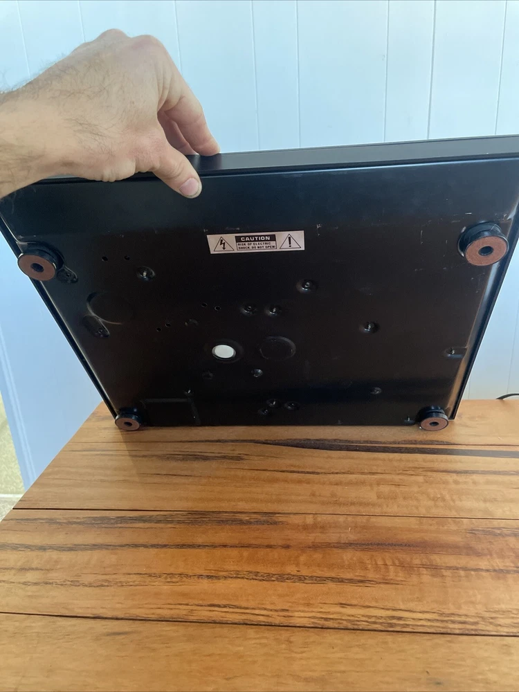 Powers on and spins. No needle. Arm does not lift by itself. I don’t know if it is supposed to but seems like it should. Aluminum platform with rubber platter. Selling as is.