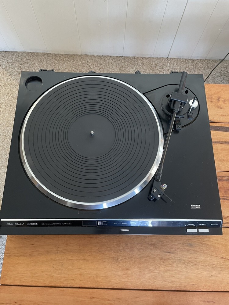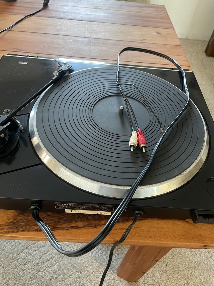 Powers on and spins. No needle. Arm does not lift by itself. I don’t know if it is supposed to but seems like it should. Aluminum platform with rubber platter. Selling as is....
