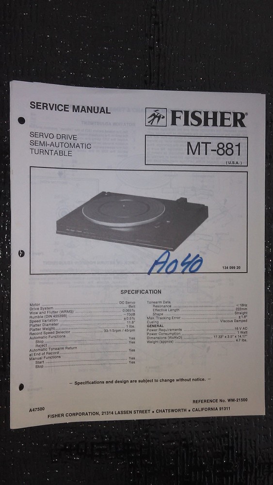 Shipped in a new mailer. Up for bid..... Original Printed Factory Manual. Picture of actual manual. Very good used Condition. May have technician notes written inside. Manual is from our family TV and radio repair shop that closed in the early 90's. Stored in a climate controlled warehouse in filing cabinets for over 20 years. Please see Pic. $Free shipping in the US. Tracked USPS Media mail Shipment. I ship fast and pack with care! Please contact me with any questions. Thanks and Happy Bidding!!! AS-IS.