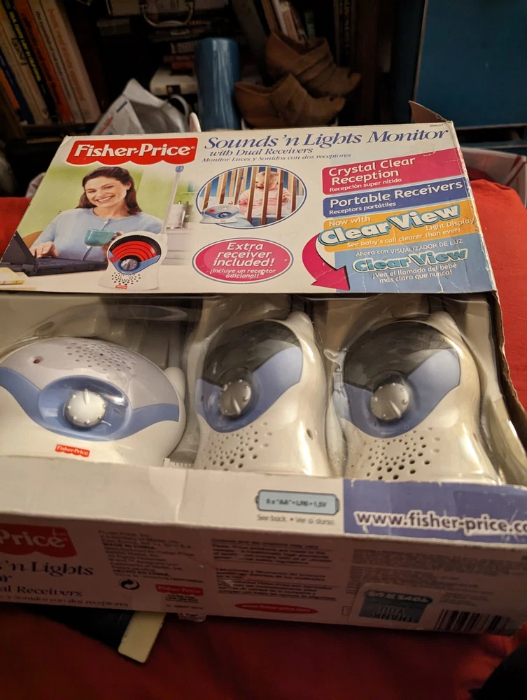 This Fisher-Price baby sound and lights monitor set comes with two receivers and is perfect for parents looking for a reliable way to keep an ear on their little ones. The portable design and analog frequency of 49MHz make it easy to use and the volume control allows for customizable sound levels. The set is housed in its original box, making it a great option for gifting. Enjoy the peace of mind that comes with knowing you can hear your baby's every move, without worrying about the condition of the device.
