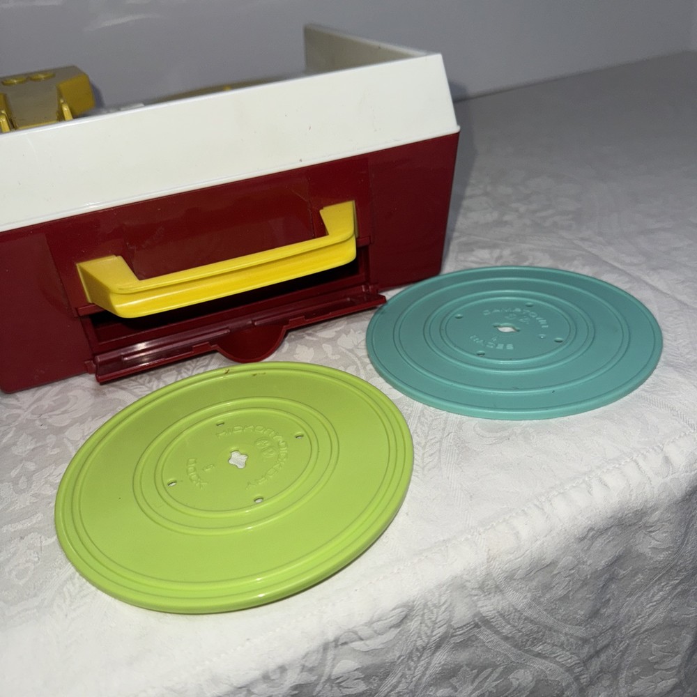 Fisher-Price Multicolor Portable Music Box Record Player Turntable Toy W/ Discs. Condition is Used. Shipped with USPS Ground Advantage.