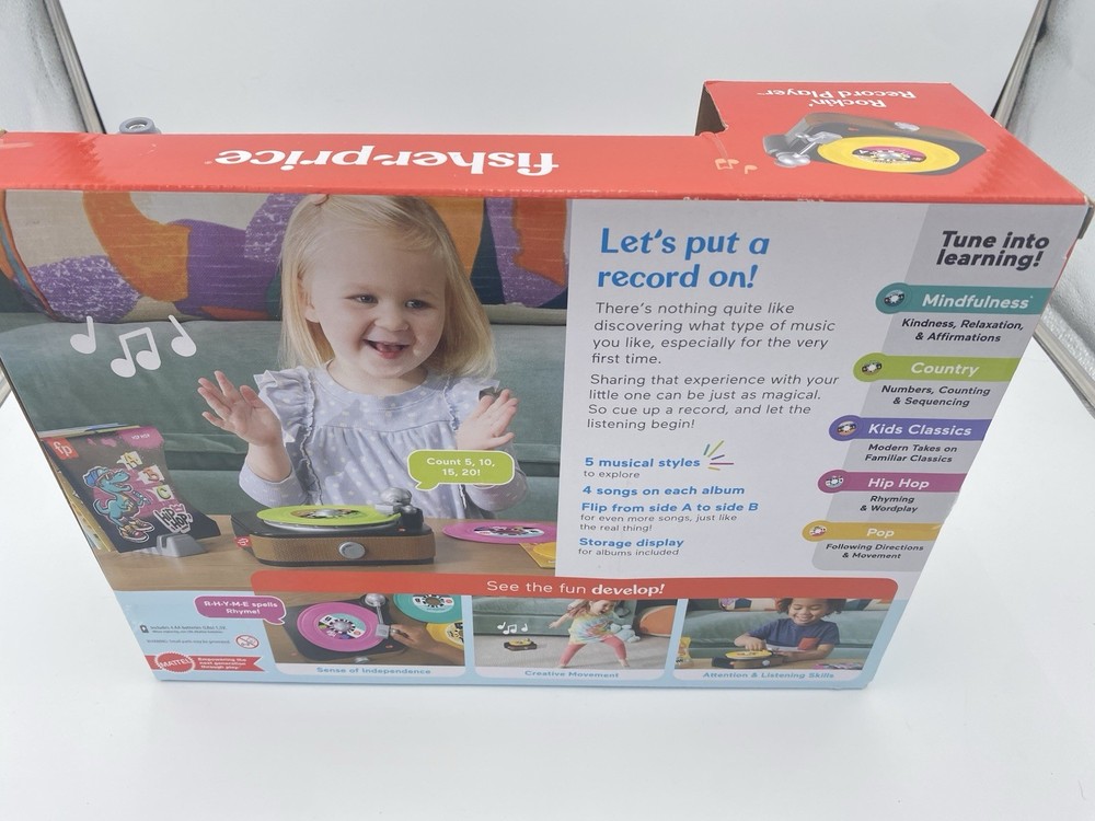 Fisher-Price Rockin’ Record Player Musical Toy with Turntable & 5 records. Condition is New. Shipped with USPS Ground Advantage.