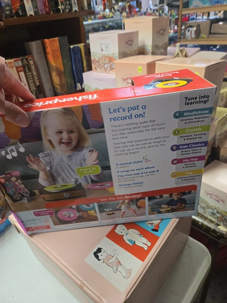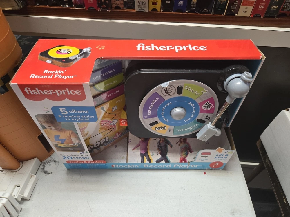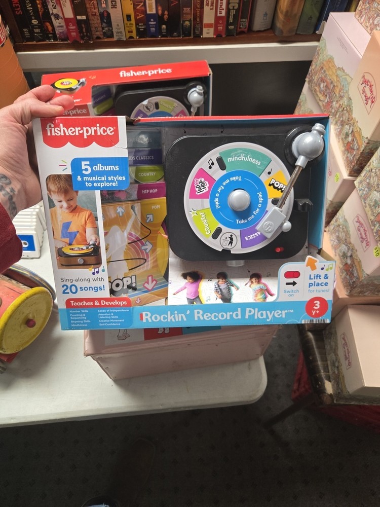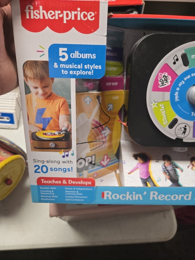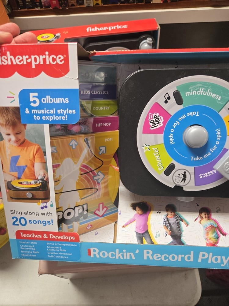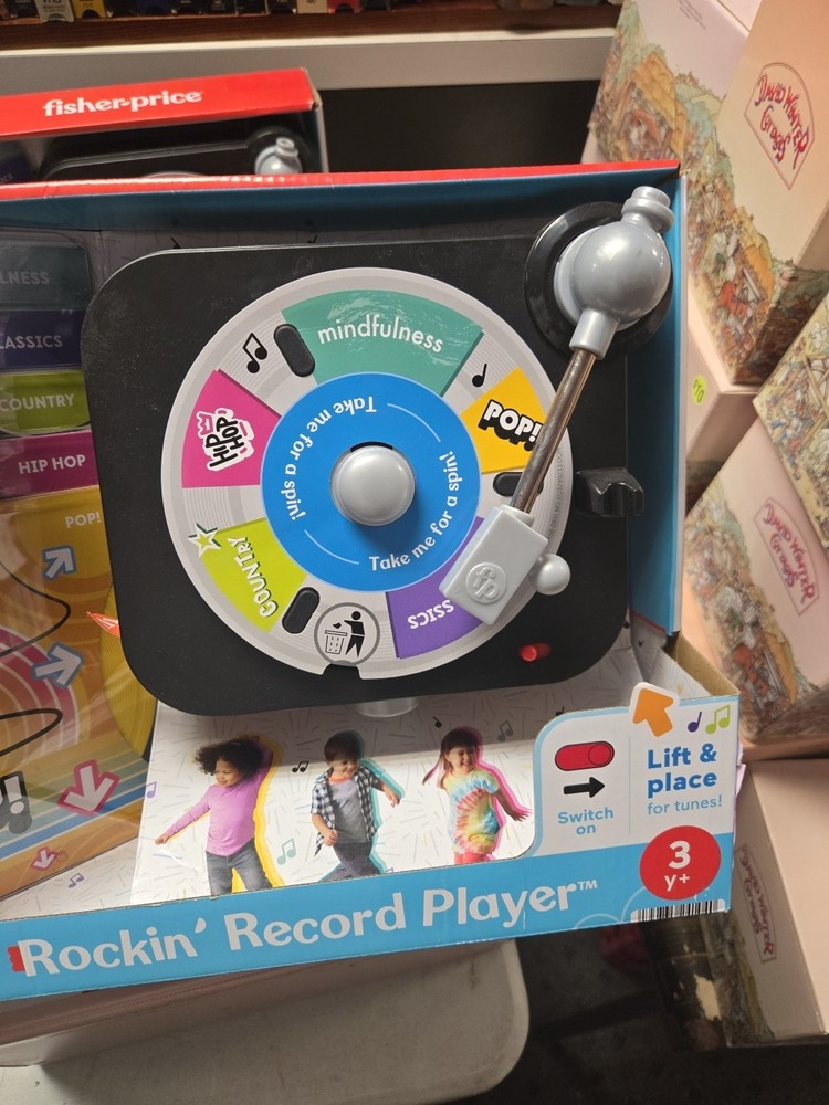 Introducing the Fisher-Price Rockin’ Record Player Musical Toy with Turntable! This toy is perfect for children aged 3 and above who love music and playing games. It is a brand new product and is sure to bring joy to your little one's face. New in box , box may have minor wear or sticker on side as seen in photo. The turntable is a great feature of this toy as it allows children to create their own music. They can play their favorite tunes and even create their own unique music. The Rockin’ Record Player is a perfect addition to any child's toy collection and is sure to provide hours of entertainment.