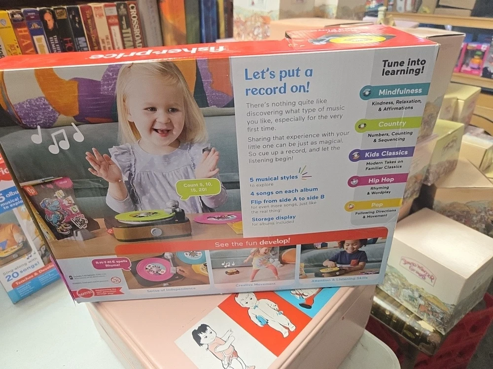 This musical toy is a hit with little ones! The turntable lets kids spin records and create fun beats, keeping them entertained for hours. Bright, colorful, and sturdy, it’s perfect for sparking creativity and musical play. The interactive features make it engaging, and the sound quality is great for a toy. Brand new in box, it’s a fantastic gift that will bring big smiles. Highly recommend for any young music lover!