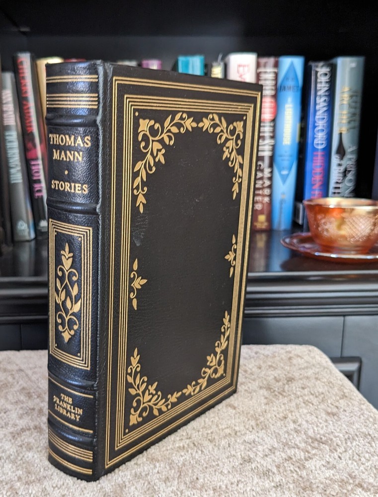 Illustrated by Robert Borja "Death in Venice"; "Tonio Kroger"; Mario and the Magician"; "Disorder and the Early Sorrow"; "Felix Krull" First Edition, First Printing. As New (AN) condition (see description of terms). Accented in 24k gold, printed on archival paper with gilded edges. Smyth sewing and concealed muslin joints. Bound in full leather with hubbed spines and sewn-in satin ribbon book marks. Gilt textblooks and gilt tooling on the boards. Silk moire end papers - ribbon and silk colors match. Unopened and unread copies. If you need pictures of the inside front covers I can get them but I will not open the book fully to do so. . .it will make for awkward pictures. NOTES: (AN) - As New - unread, unused, clean and flawless copy. (F) - Fine - as close to As New condition except it mave have been previously opened or carefully read. (VG) - Very Good - shows signs of previous ownership and use, but still a nice copy. Flaws or defects (former owners name [FON] or former owners initials [FOI] should be noted). (G) - significant wear - tears in DJ, wear on the edges of DJ or boards as well as text block. All issues should be noted. (F) - Fair - noticeable wear. Some non-essential pages missing (front and rear endpapers). Smyth sewing - stiching groups of folded paper together with dinder thread. The folded papers, called Signatures, are usually large sheets of pinted matter that are folded into groups of 8-32 pages. Each signature is sewn individually with multiple stiches down its length. THe signatures are then joined together to create a book block which is then glued to paper or hardcover case. Muslin joints - small groves that runs vertically down the book itself between the book boards (book cover) and the spine. It bends when the book is open. Only on hard cover books. Muslin cloth shrinks while drying so it molds itself to the board edges to make them sharp and defined. Franklin Library, the distribution arm of the Franklin Press, began publishing in 1973 and closed permanently in 2000. The 100 Greatest Books of All Time series, published between 1974 and 1982, is among the most collectible work from Franklin Library. The heavily illustrated collection features remarkable works by literature's most legendary writers. First copies as well as signed first copies published by Franklin Library are "limited" to an unstated number of copies. Franklin Library did not produce reprints and books were subscription only. This series is "The 100 Greatest Books of All Times". Almost all of their full leather series had ID blocks on one of their first few pages that identified the series. As an example, their series, The 100 Greatest Books of All Time which ran from the beginning of the company in 1974 to 1983 had a series specific ID Block that read, "This limited edition of (title of the book) is published exclusively for subcribers to The Franklin Library collection The 100 Greatest Books of All Time". Their other series, The First Edition Society, which ran from 1976 to 1981 had an ID Block that read, "This limited first edition of (title of book) by (author of the book) has been privately printed exclusively for members of The First Edition Society".