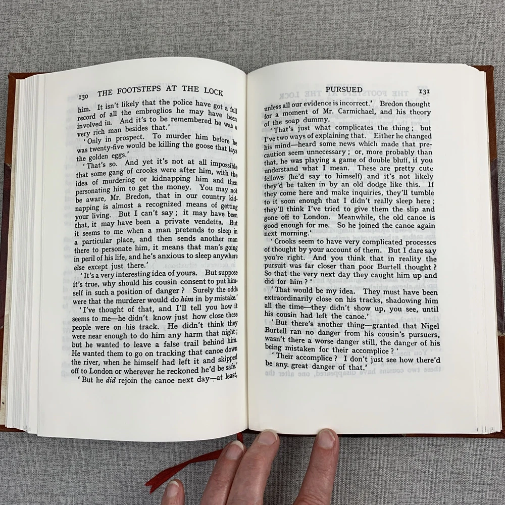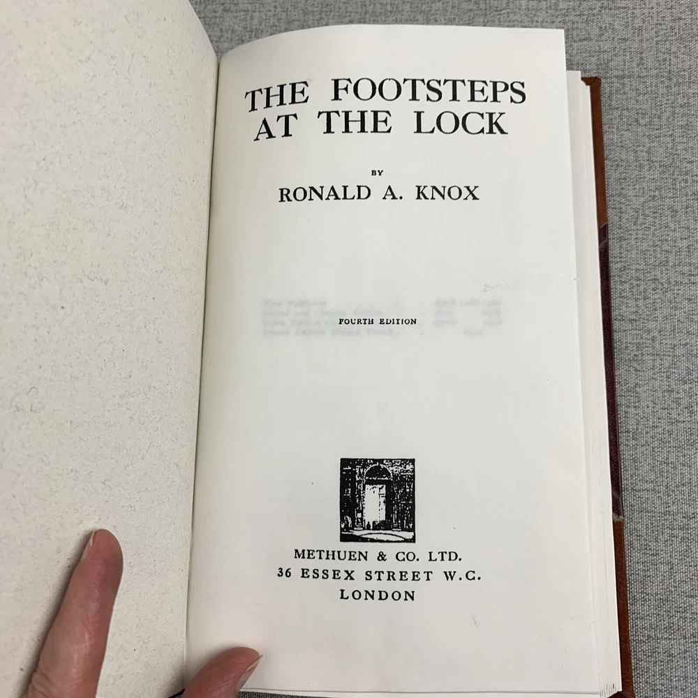 Footsteps At The Lock By Ronald A. Knox 1928 Methuen Uk 4Th Ed Leather Bound This is a facsimile of a book copyrighted 1933. A beautifully bound reprint of a book originally published in 1933. Covers have very minor signs of wear. Binding is excellent. Pages are tight and clean.