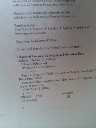 Four Complete Novels: Great Expectations; Hard Times; A Christmas Carol; A Tale of Two Cities by Dickens, Charles Cover and binding are worn but intact. A reading copy in fair condition. Boards have light shelf rubbing with scuffing and bumping. Binding is lightly shaken with a cracked and exposed Endpages have light scuffing and smudging. Page edges have light scuffing and smudging. Interior pages are lightly dampstained with related wrinkling. Secure packaging for safe delivery.