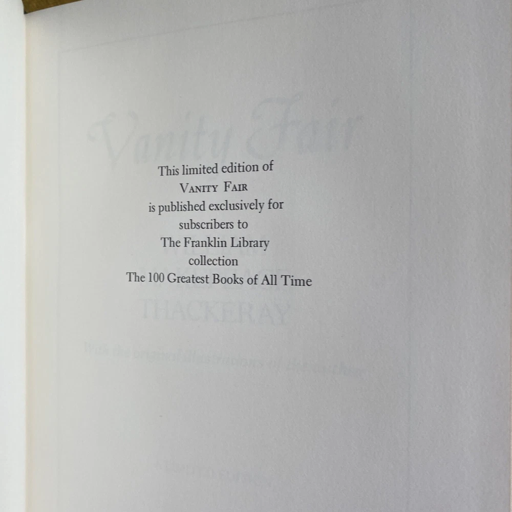 Franklin Library 100 Greatest Books~Vanity Fair W.M Thackeray~Ltd Ed W/NOTES. EXC - 100 greatest - editors notes - please see pics