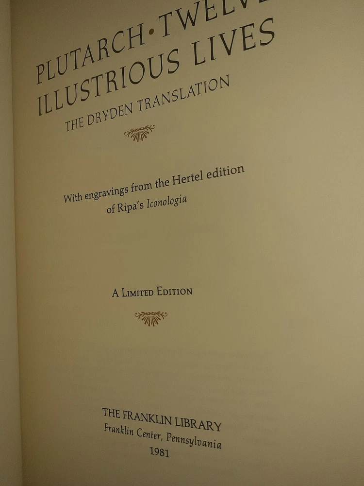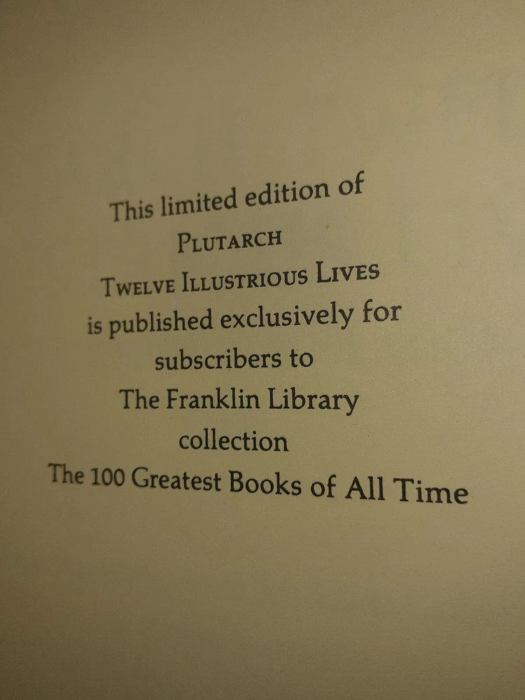 This exquisite limited edition book is a true gem for collectors and literature enthusiasts alike. Published by Franklin Library in 1981, this fine leather-bound book features 12 illustrious lives written by Plutarch. The book is in pristine condition, never been read, and would make a wonderful addition to any collection. Its binding is of the highest quality and the illustrations are simply breathtaking. The book covers a range of topics from literature to history and is a must-have for any serious book collector.