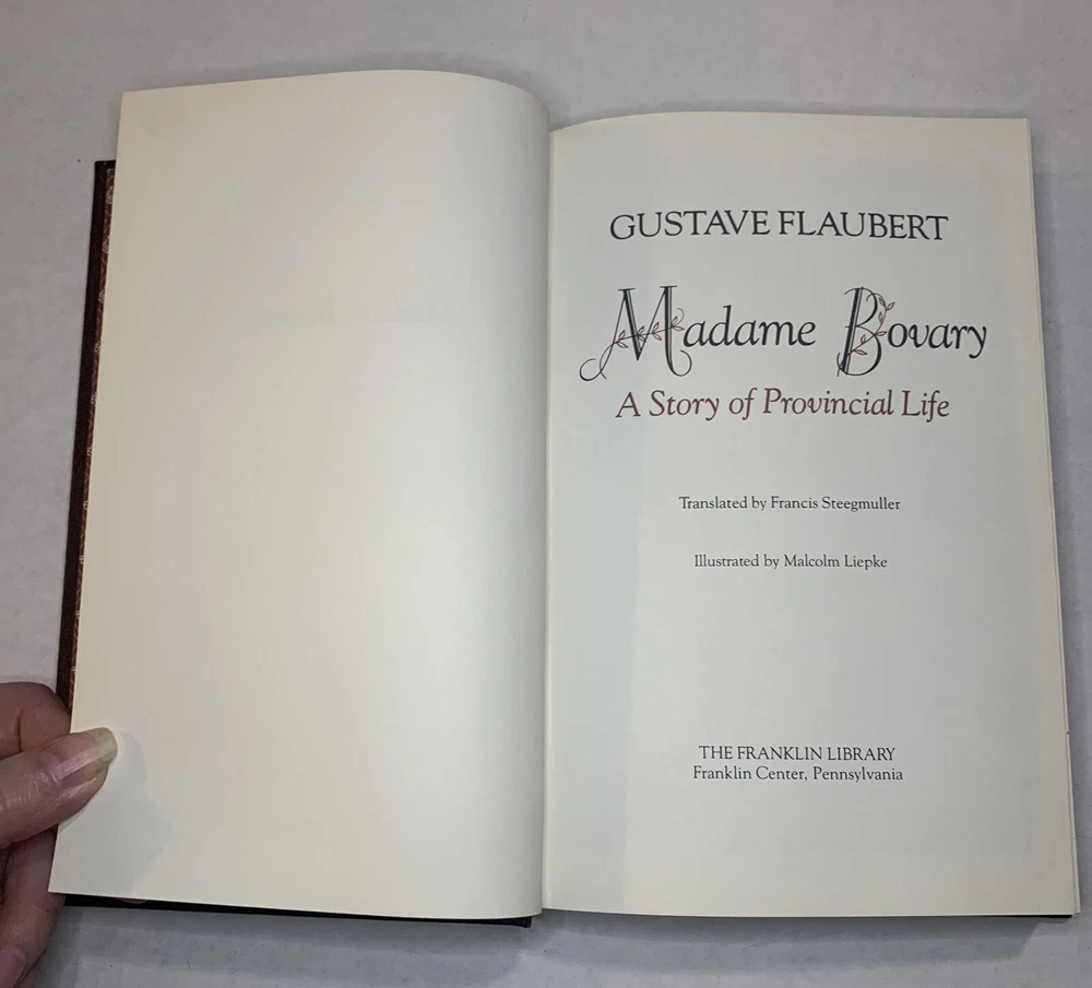 Franklin Library 1979 MADAME BOVARY by Gustave Flaubert, Leather and Gold Edition. A beautiful edition to a library of classics. This is a pre owned, vintage book in very good condition with slight signs of wear and age. Be sure to take a good look at photos to get a full scope of condition. Shipped with USPS Media Mail.