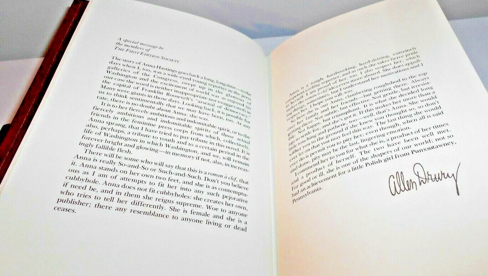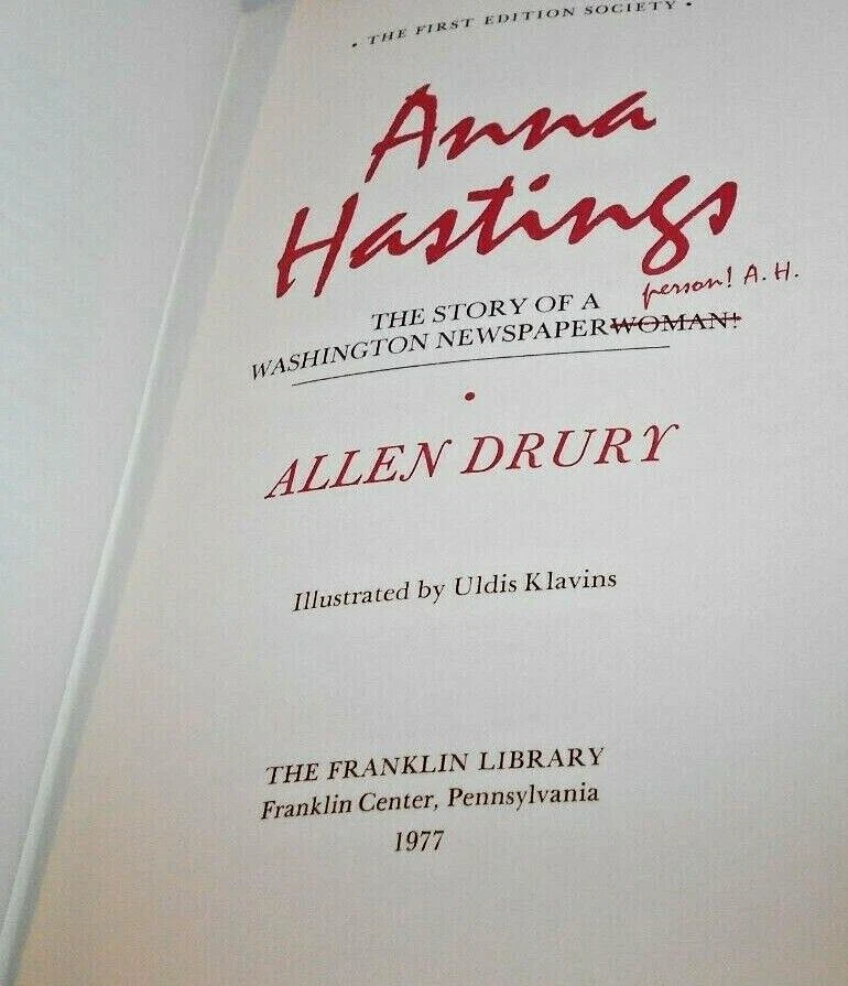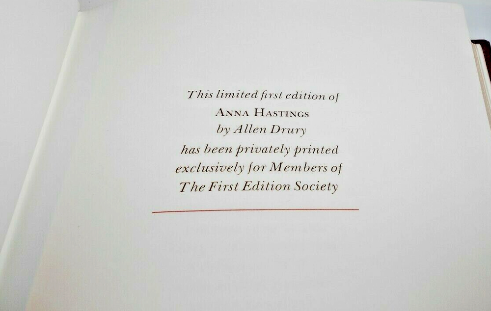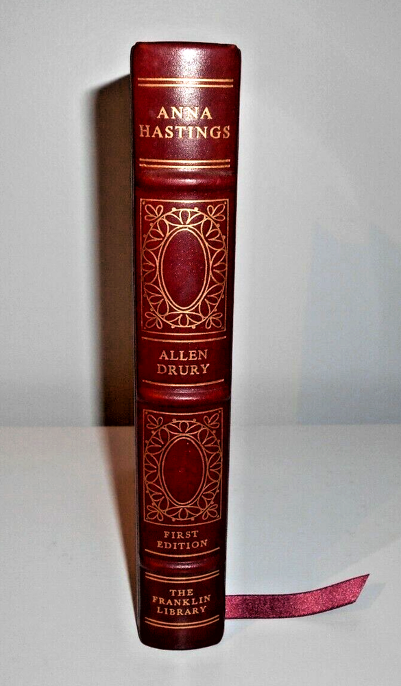 This Auction Is For: Anna Hastings By Allen Drury ~ 1977 Franklin Library Limited Edition Illustrated ~ ~ Book Bound In: Full Maroon Leather Binding With Elaborate Gilt Stamped Decorations 3 Raised Bands On The Spine With 4 Compartments Lettered And Decorated By Gilt AEG Illustrated Maroon Sateen Front And Rear Papers Ribbon Marker In 227 Pages Complete Just About 8-3/4 " Tall ~ Very Good Leather Mildly Rubbed Stiff Contents Hint Of Mustiness A Wrinkled Ribbon Marker No Owner Labels Or Inscriptions And Not Ex-Library