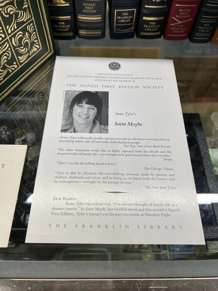 Franklin Library Anne Tyler Saint Maybe First Ed Society Signed Leather 1991....