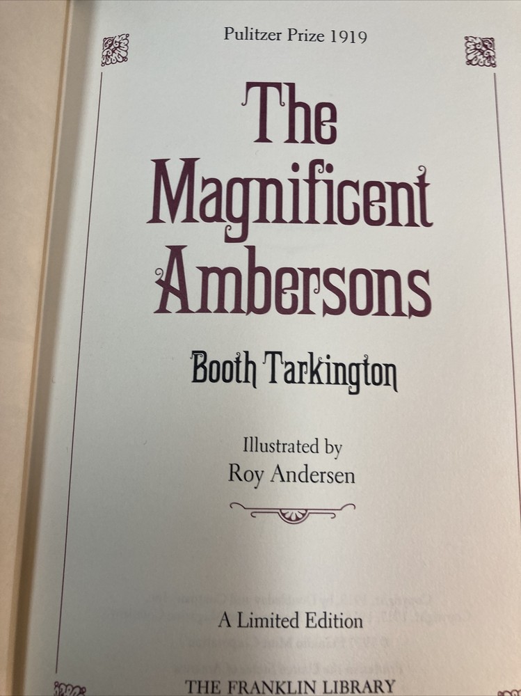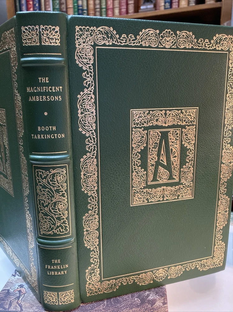 This Franklin Library edition of *The Magnificent Ambersons* is absolutely stunning! The deep green leather binding, gold gilt edges, and elegant moire silk endpapers make it a true collector’s piece. Roy Andersen’s illustrations bring Tarkington’s Pulitzer-winning story to life, and the quality of the acid-free paper ensures it will last. Though there’s a minor scuff, the book is in fantastic condition overall—a must-have for any serious bibliophile or fan of classic American literature. Holding this limited edition feels like owning a piece of literary history!