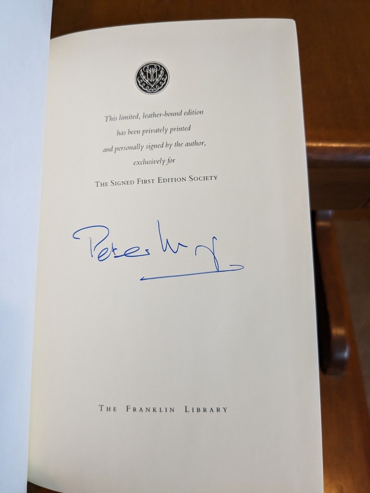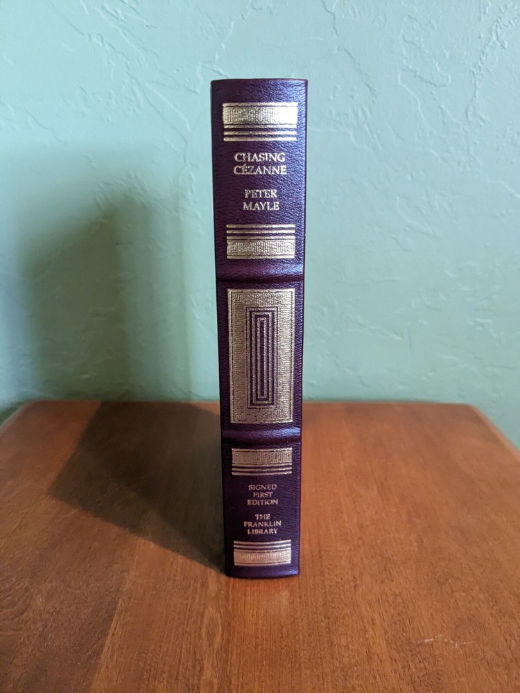 Chasing Cezanne first edition hand signed by author Peter Mayle. Published by Franklin Library in full leather with gold gilt page ends, marbled end pages and silk marker ribbon. Book is in excellent condition. See pictures for details.